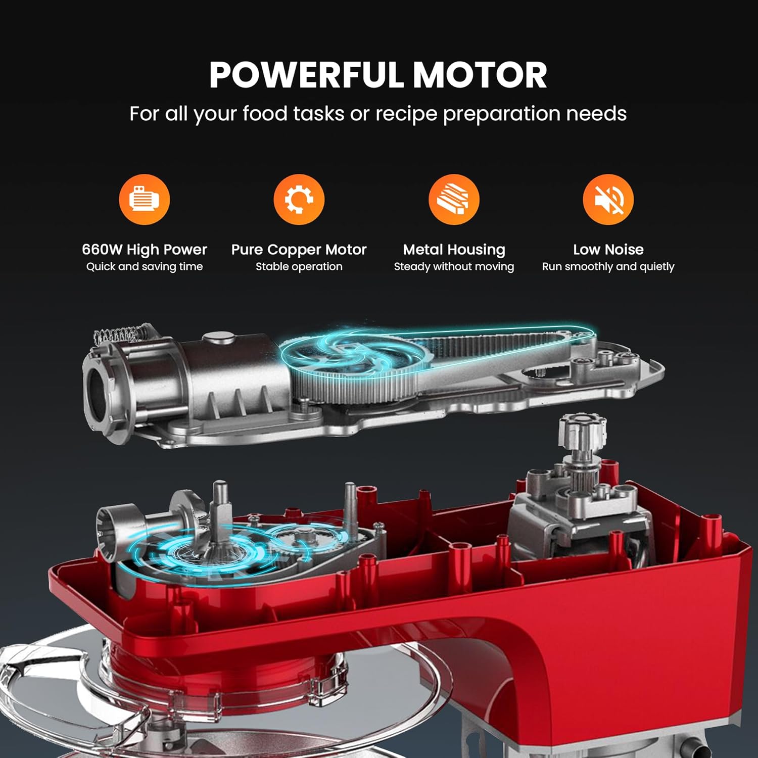 - POWERFUL MOTOR - High performance 660W motor finishes kneading and mixing quickly and thoroughly than human hands; Handy 6-speed control with a pulse function for all your food tasks or recipe preparation needs