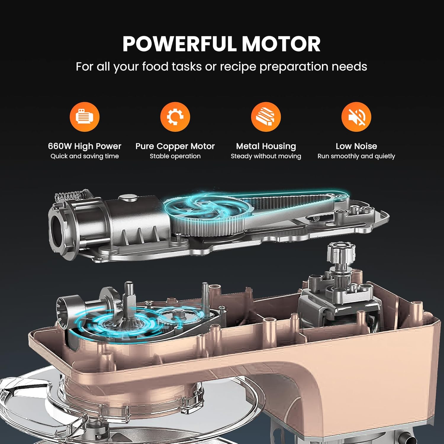 - POWERFUL MOTOR - High performance 660W motor finishes kneading and mixing quickly and thoroughly than human hands; Handy 6-speed control with a pulse function for all your food tasks or recipe preparation needs