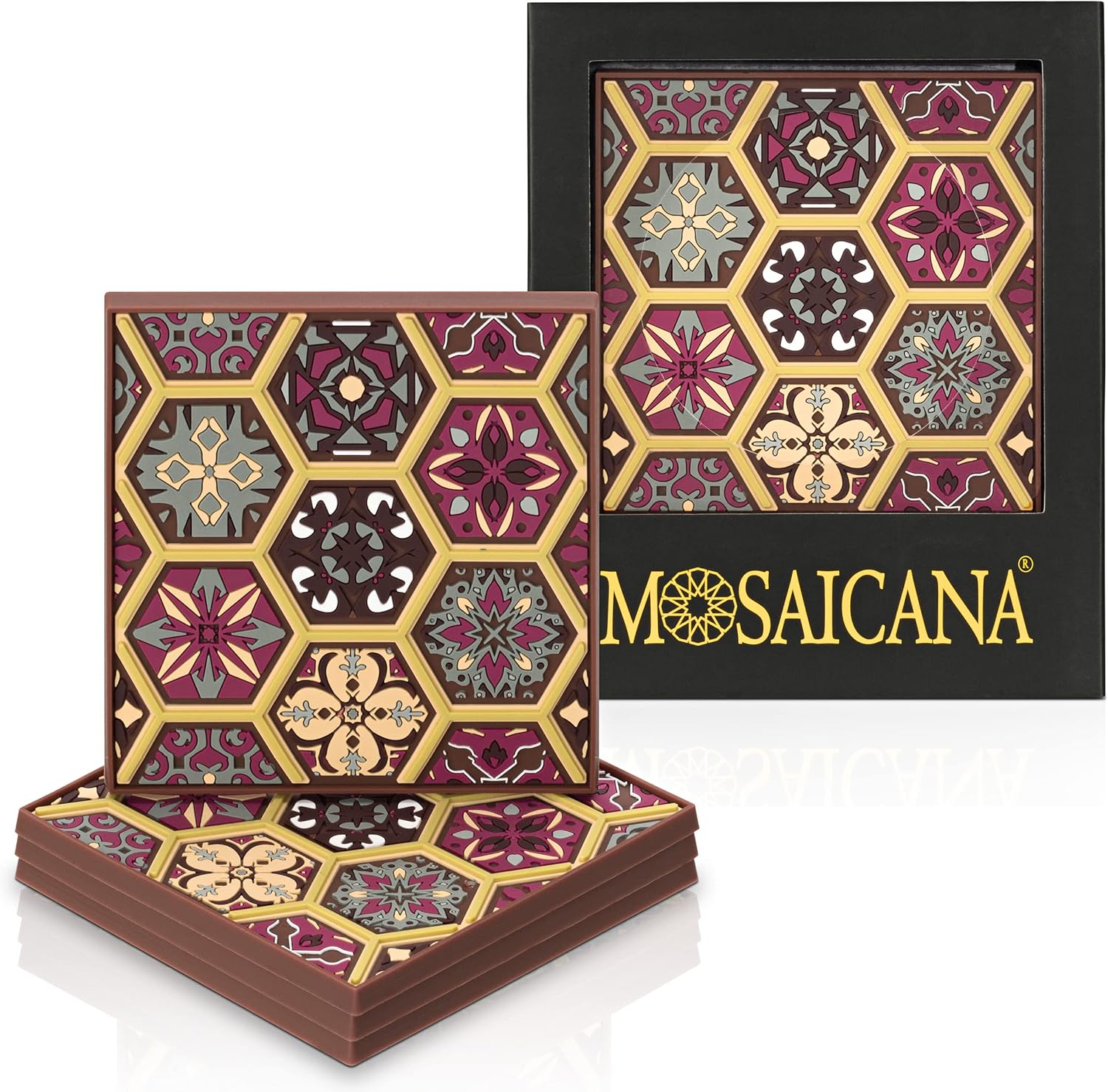 - COLORFUL DESIGNS THAT YOU WON'T SEE SIMILAR ANYWHERE Our designs are based on 3D geometric patterns from ancient history, we applied the designs on 3D colorful coasters that will add a nice touch to your home collection