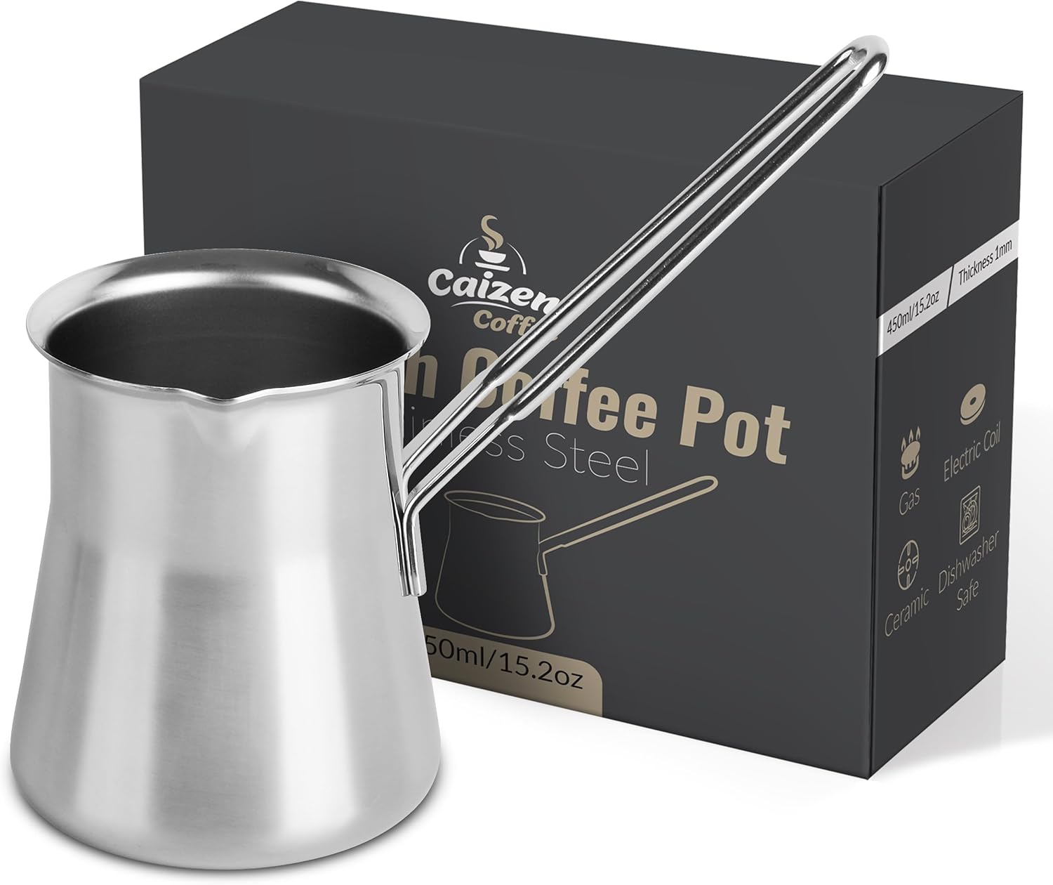 Quality Turkish Coffee Pot - Turkish Coffee Maker, Chai Pot, Arabic Coffee Pot, Briki Greek Coffee Pot, Greek Briki, Turkish Coffee Cezve, Turkish Coffee Pot Ibrik (15oz)