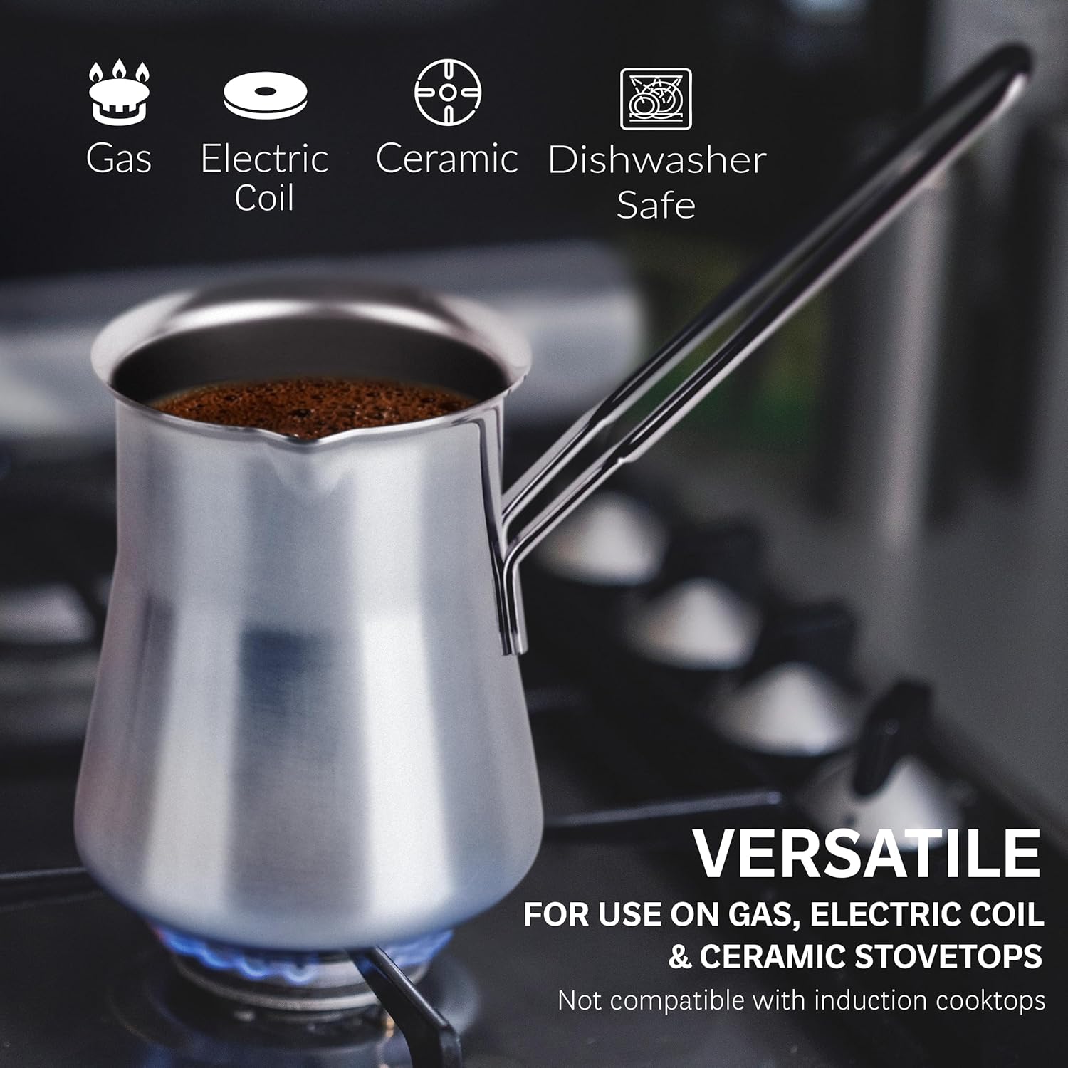 - SATISFACTION GUARANTEE - Our Turkish Coffee Pots are made from the highest quality materials available and are designed to last for years. We are so confident that you will love this product, we're offering a 1 Year Satisfaction Guarantee.