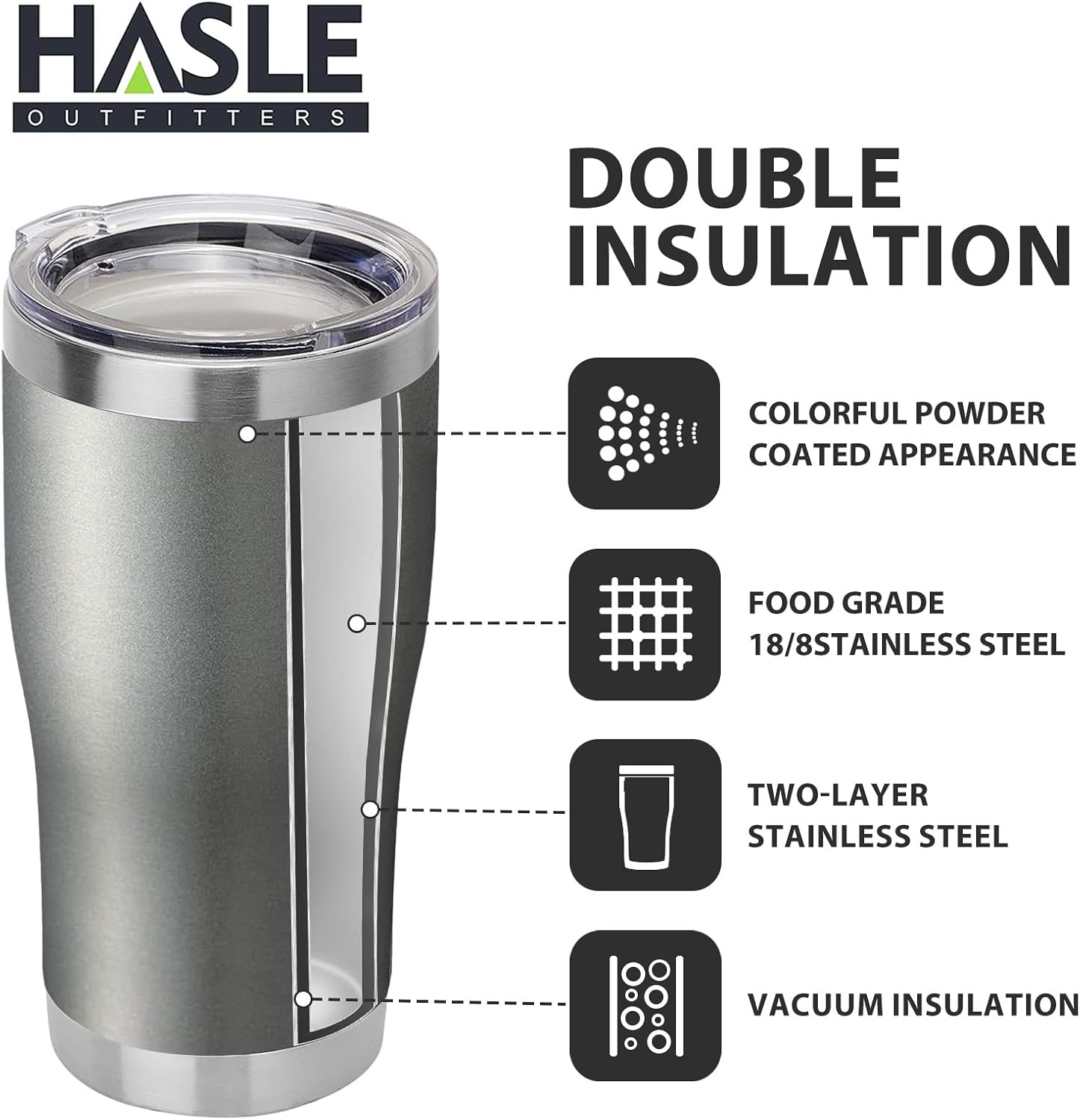 HASLE OUTFITTERS 20 oz Tumbler Bulk, Stainless Steel Tumblers with Lid, Vacuum Insulated Tumbler, Double Wall Tumbler Cup, coffee mugs, Gray, 1 Pack