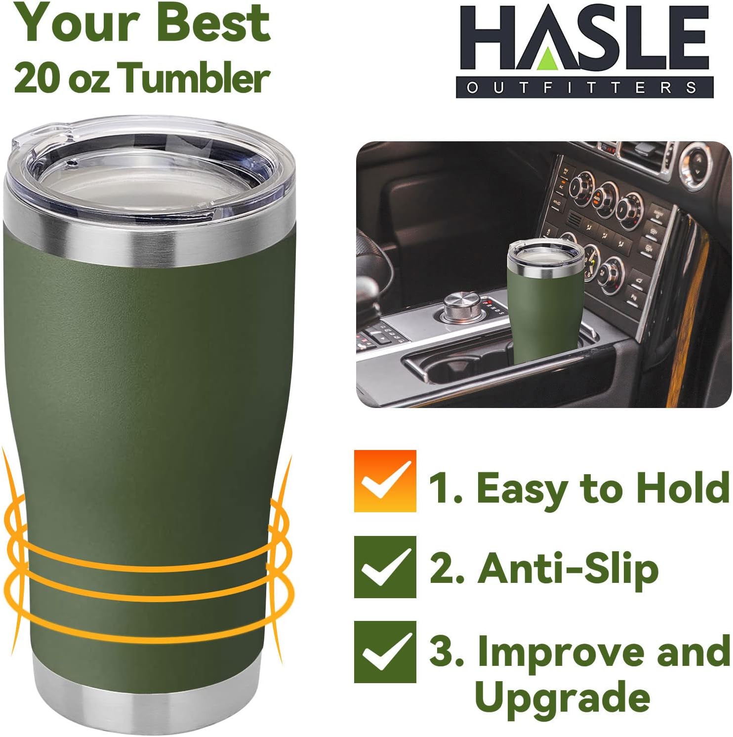 HASLE OUTFITTERS 20 oz Tumbler Bulk, Stainless Steel Tumblers with Lid, Vacuum Insulated Tumbler, Double Wall Powder Coated Cup, coffee mugs, Army Green, 1 Pack