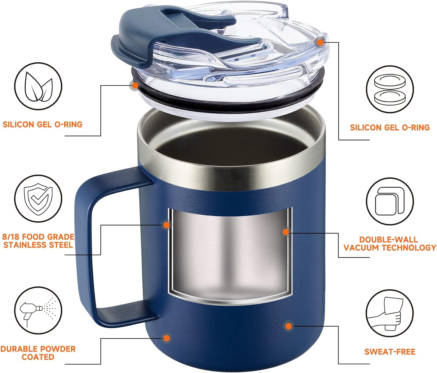 ALOUFEA 12oz Stainless Steel Insulated Coffee Mug with Handle, Double Wall Vacuum Tumbler Cup with Fliping Lid, Navy, 4 Pack