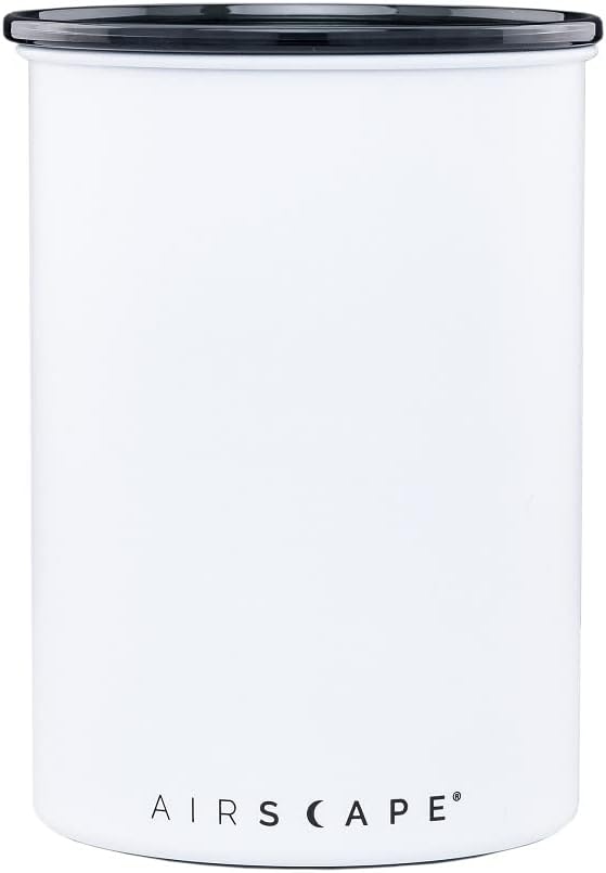Planetary Design Airscape® Stainless Steel Coffee Canister | Food Storage Container | US Patented Inner Plunger Lid REMOVES Excess Oxygen | Don't Buy airtight, Buy AIR-Less | (Medium, Matte White)