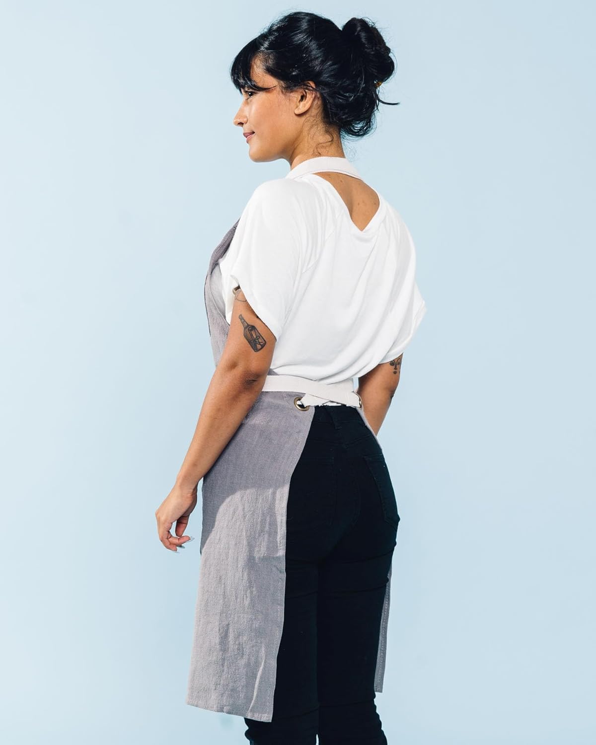 Caldo Linen Kitchen Apron for Cooking - Mens and Womens Linen Bib Apron for Professional Chef, Server, or Barista - Adjustable with Pockets (Grey)