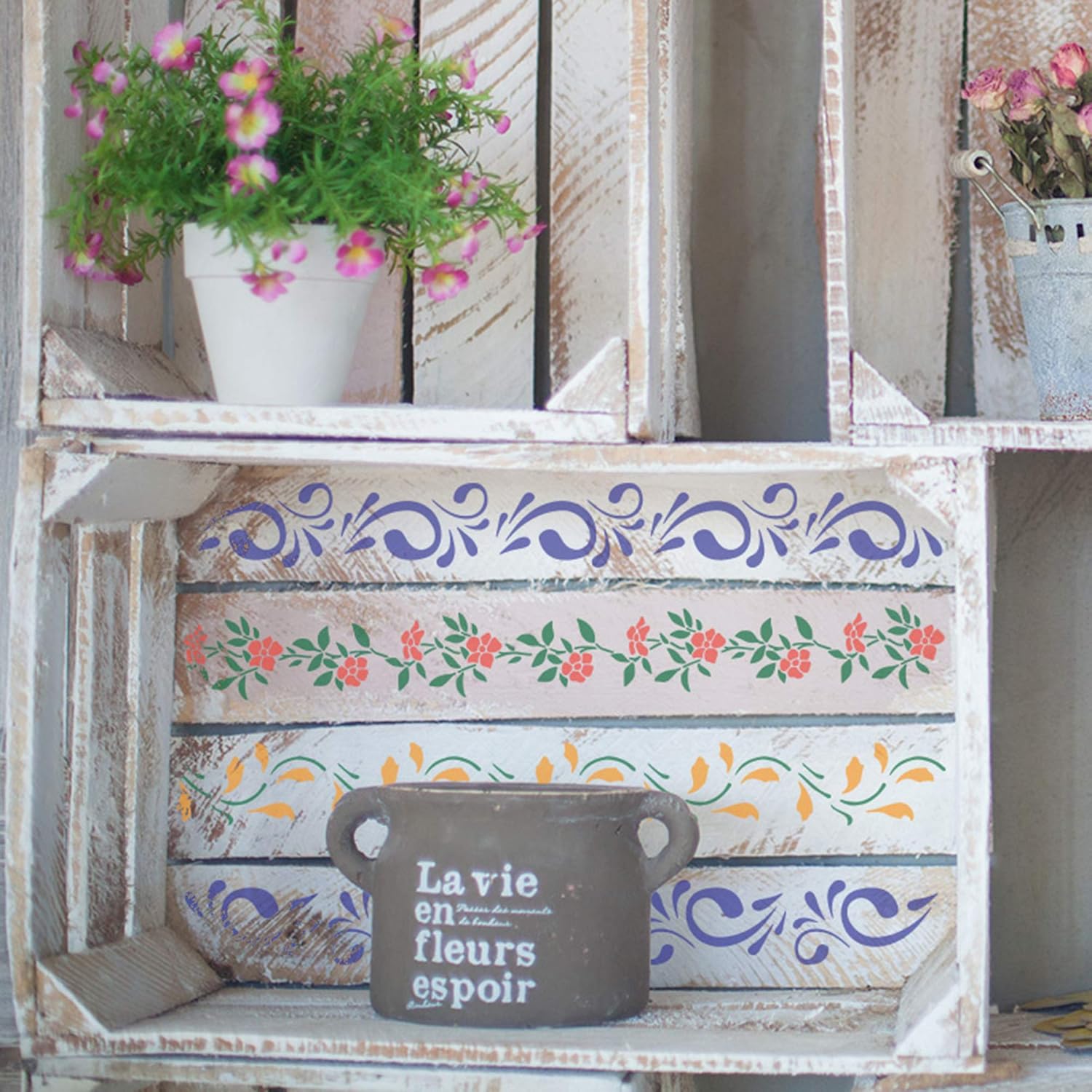 NAKLEO Painting Stencil for Crafts A4 8.3” x 11.8”, Border Flower Plant Pattern, Reusable Plastic DIY & Scrapbooking Drawing Template, Decoupage Art Home Decor, Wall Wood Fabric Furniture