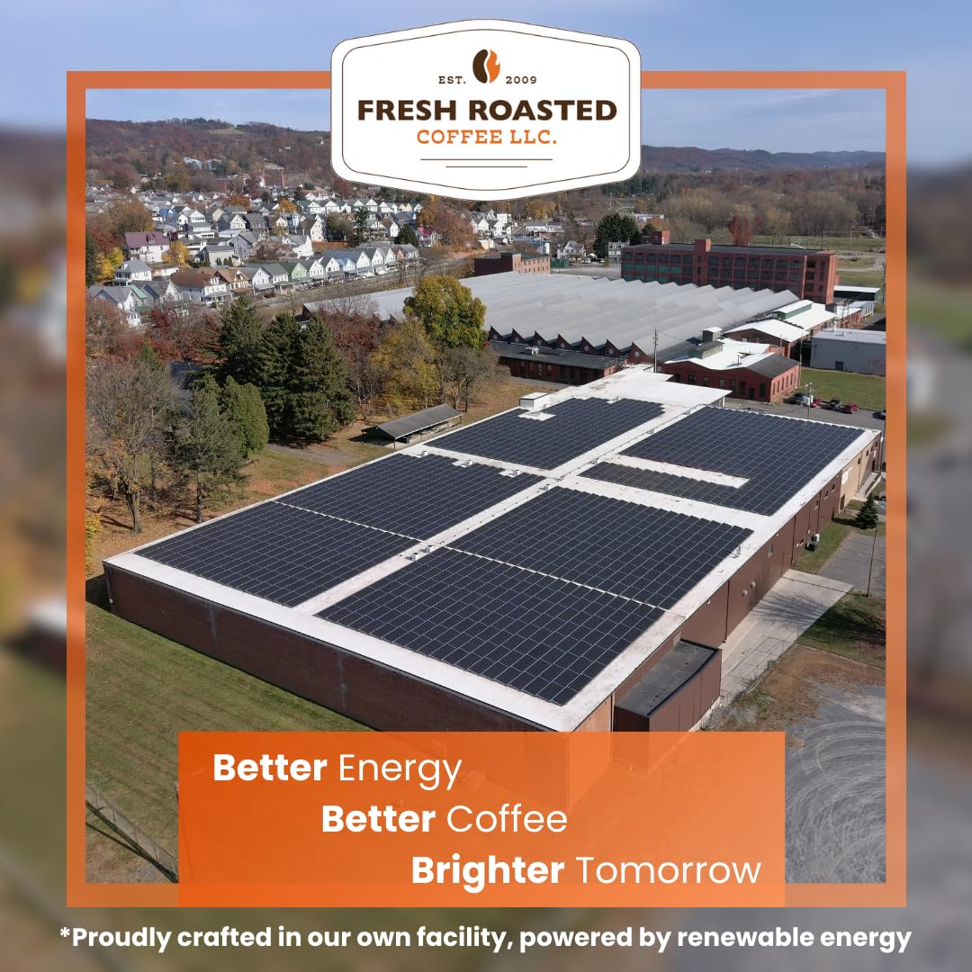 - Coffee is roasted in our environmentally friendly coffee roaster.