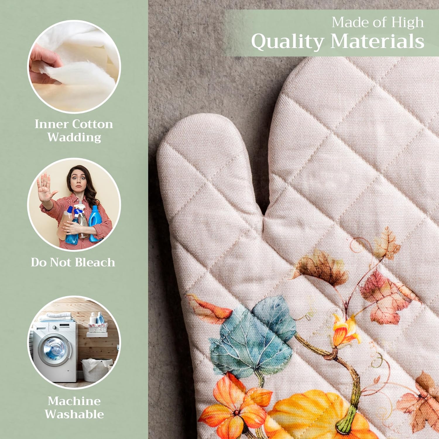 - 100% Quilted cotton: Crafted from thick, durable quilted cotton, this heat resistant oven mitt provides a soft feel, safe handling, and lasting performance. A must-have kitchen accessory for everyday cooking, roasting, or baking tasks