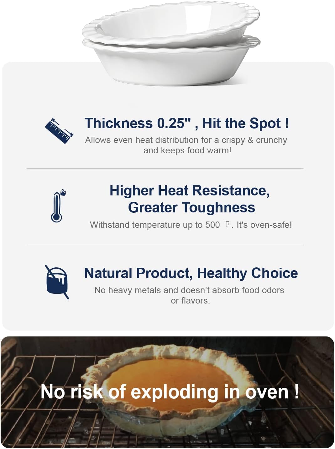 - Extra Large Capacity For Your Family: Starts with our fluted stoneware pie dish; A versatile classic for baking apple, pumpkin, shepherd’s pies, chicken pot, quiches, and more; Especially suitable as a holiday pie pan; 9” in diameter and 2.6” in depth; Deeper design for a larger capacity allows more happiness to share with your beloved