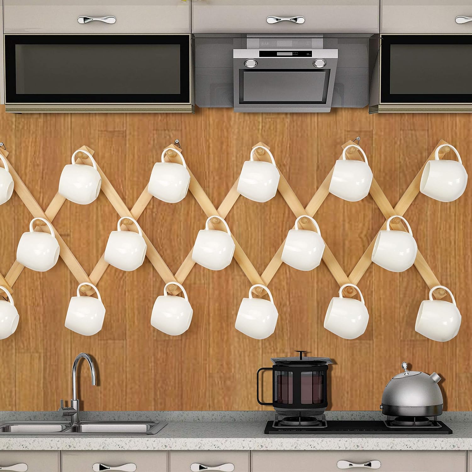 - 【ENDURING:】Made of higher-cost solid beech wood, much thicker and sturdier accordian wall hanger.