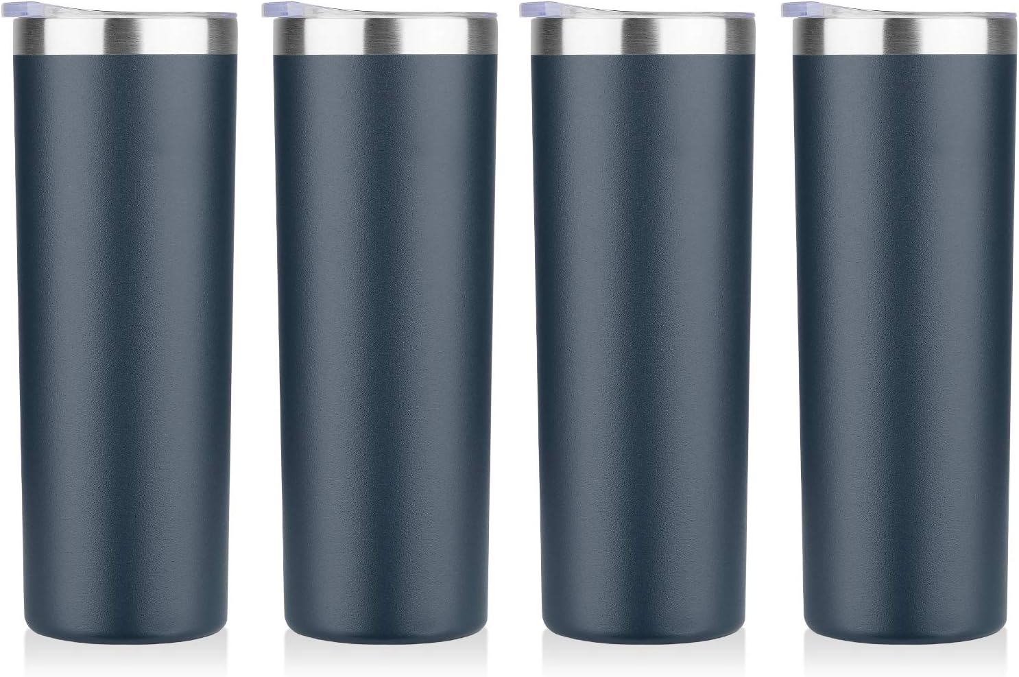 HASLE OUTFITTERS 20 oz Skinny Tumblers Bulk Set, Stainless Steel Insulated Slim Tumblers with Lids, Reusable Double Wall Travel Coffee Mugs, Durable Powder Coated Travel Water Cups(Navy, 4)