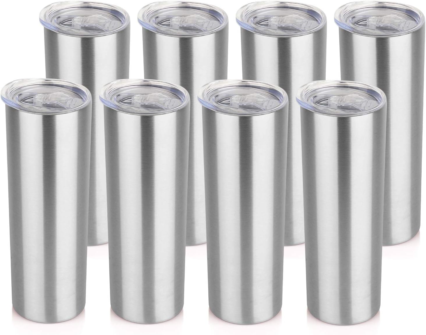 HASLE OUTFITTERS 20 oz Skinny Tumblers Bulk Set, Stainless Steel Insulated Slim Tumblers with Lids Travel Water Cups(Stainless Steel, 8)