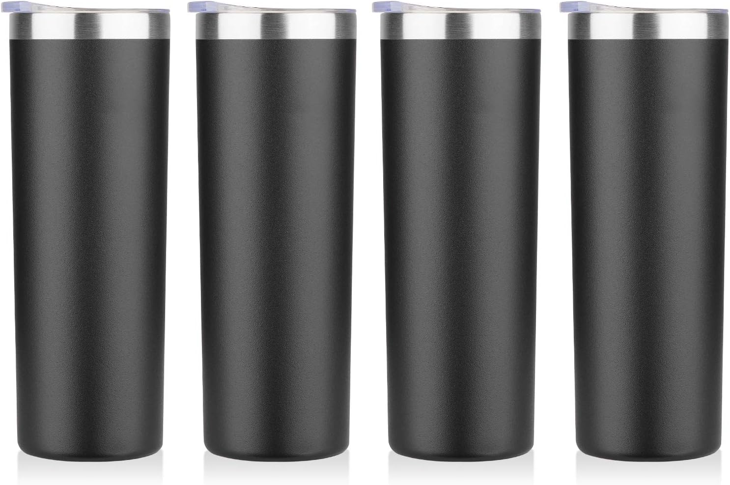 HASLE OUTFITTERS 20 oz Skinny Tumblers Bulk Set, Stainless Steel Insulated Slim Tumblers with Lids, Reusable Double Wall Travel Coffee Mugs, Durable Powder Coated Travel Water Cups(Black, 4)