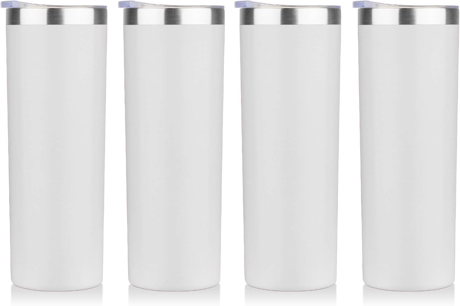 HASLE OUTFITTERS 20 oz Skinny Tumblers Bulk Set, Stainless Steel Insulated Slim Tumblers with Lids, Reusable Double Wall Travel Coffee Mugs, Durable Powder Coated Travel Water Cups(White, 4)
