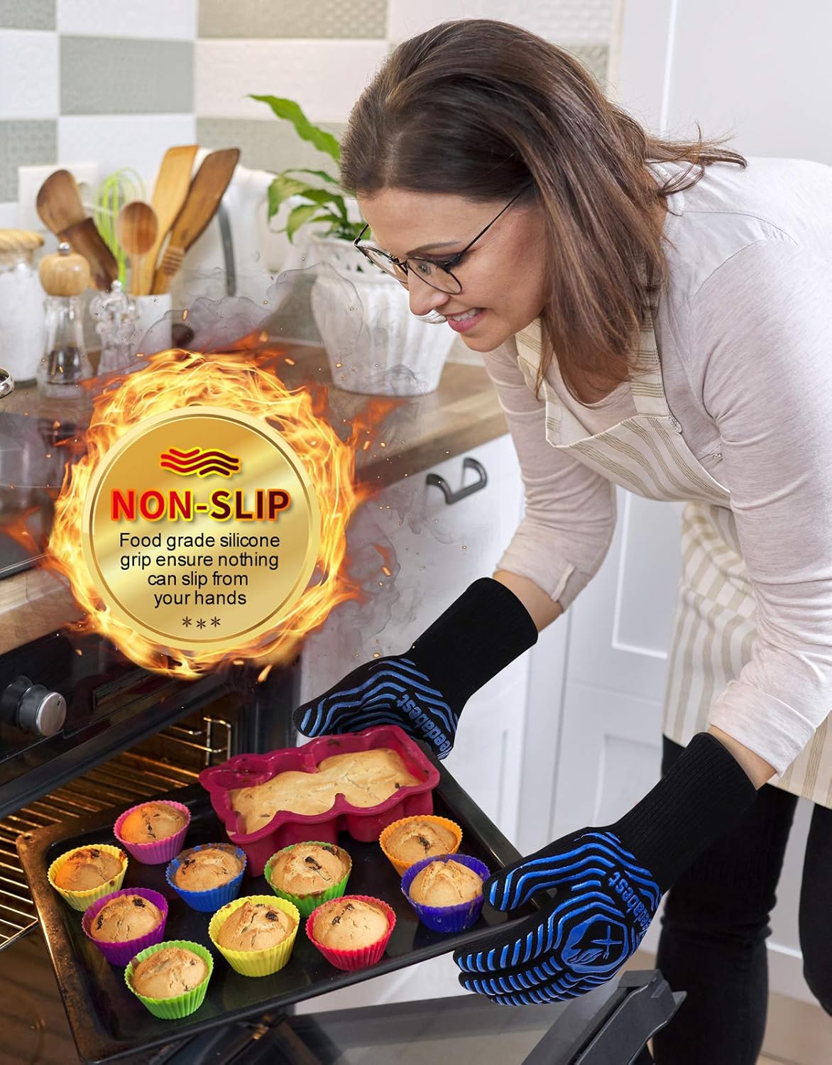 WEEDABEST Hot BBQ Gloves Heat Resistant Kitchen Oven Mitts Professional Long Heat Resistant Cooking Gloves for Grill,Grilling,Smoker,Barbeque,13.5 inch-Blue
