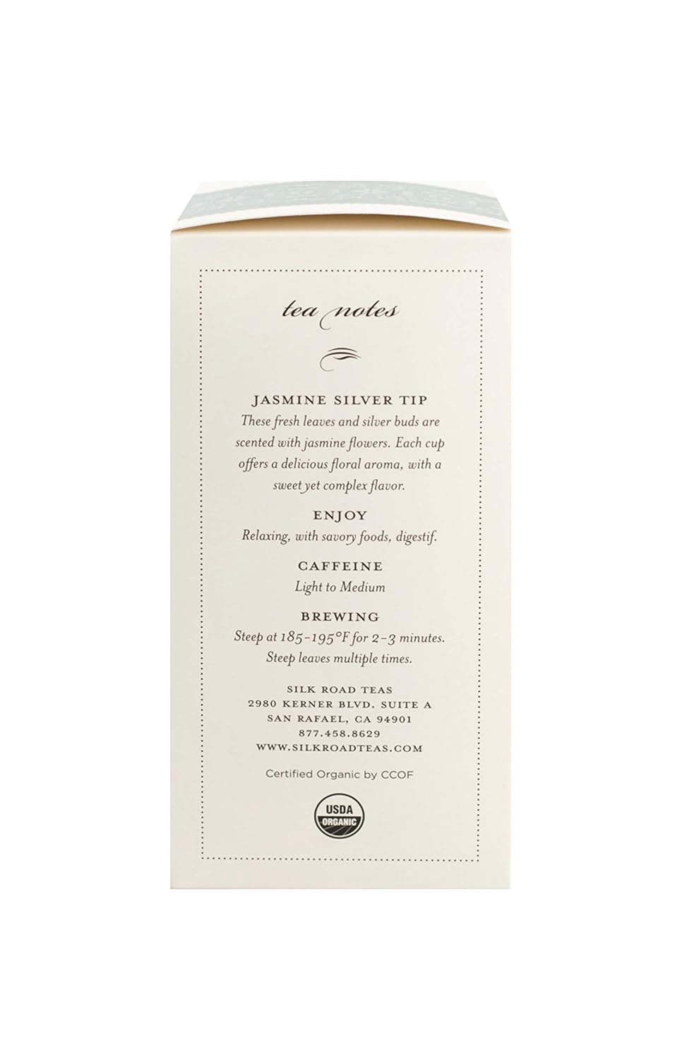 Silk Road Teas, Organic Jasmine Silver Tip Green Tea, Floral Aroma, Invigorating & Savory Flavors, 15 Tea Bags