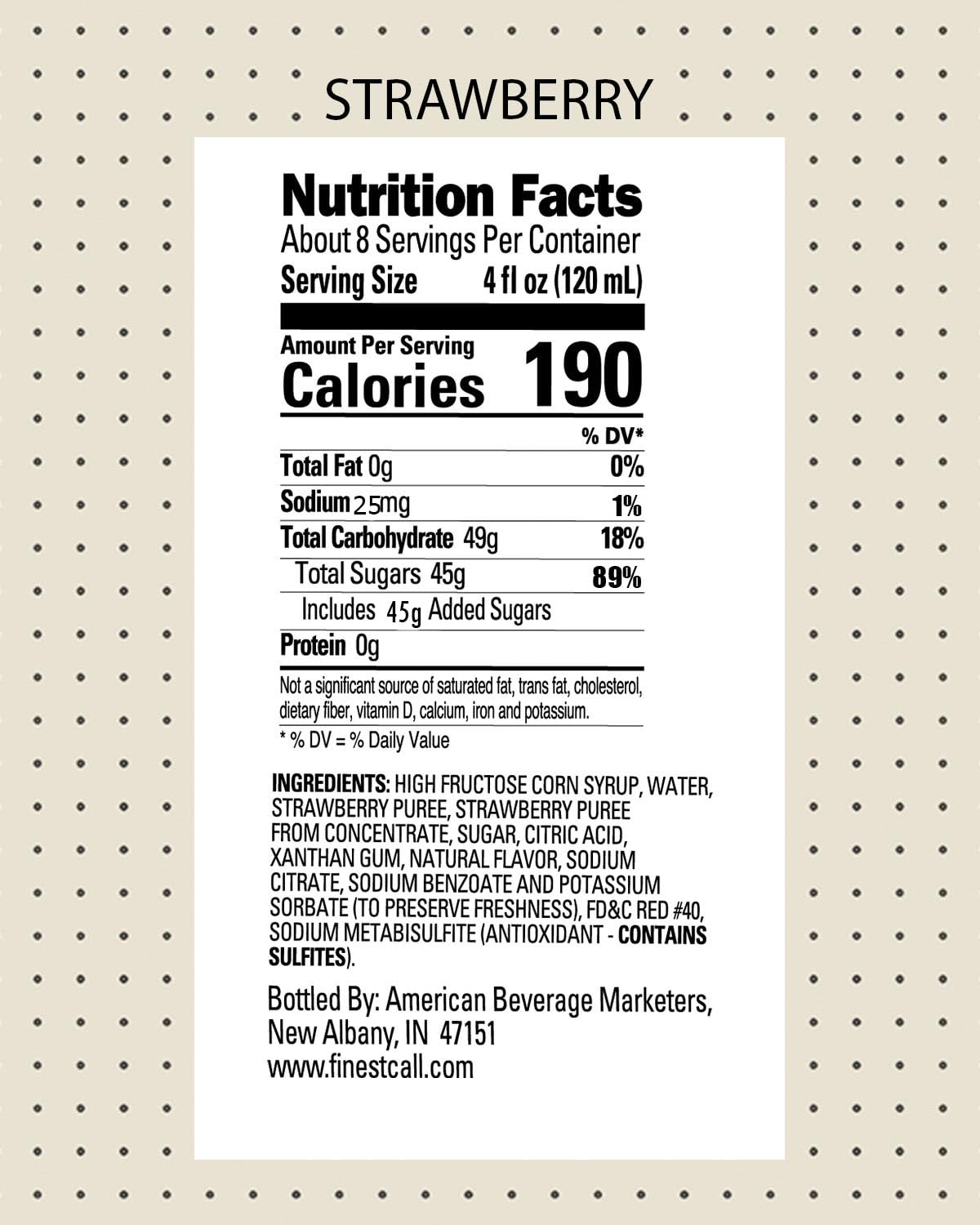 Finest Call Premium Strawberry Puree Drink Mix, 1 Liter Bottle (33.8 Fl Oz), Pack of 6