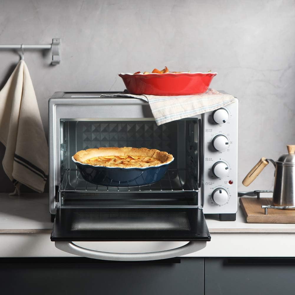 - Wave Edge Design - Round bakeware with ruffle design, a variety of colors for you to choose, decorate your kitchen. The wide groove edge give your dough a lotus leaf shape. After making the pie, you can take a beautiful picture to share with friends and enjoy the food with your family.