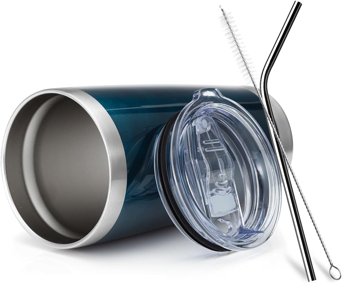 - [Exclusive Bonus Bundle]2*20 oz tumbler with splash-proof slide lid, 2*straw,1*straw brush. The lid is splash-proof and perfect for office, school, trip and picnic. The great value tumbler suit will save your time and money