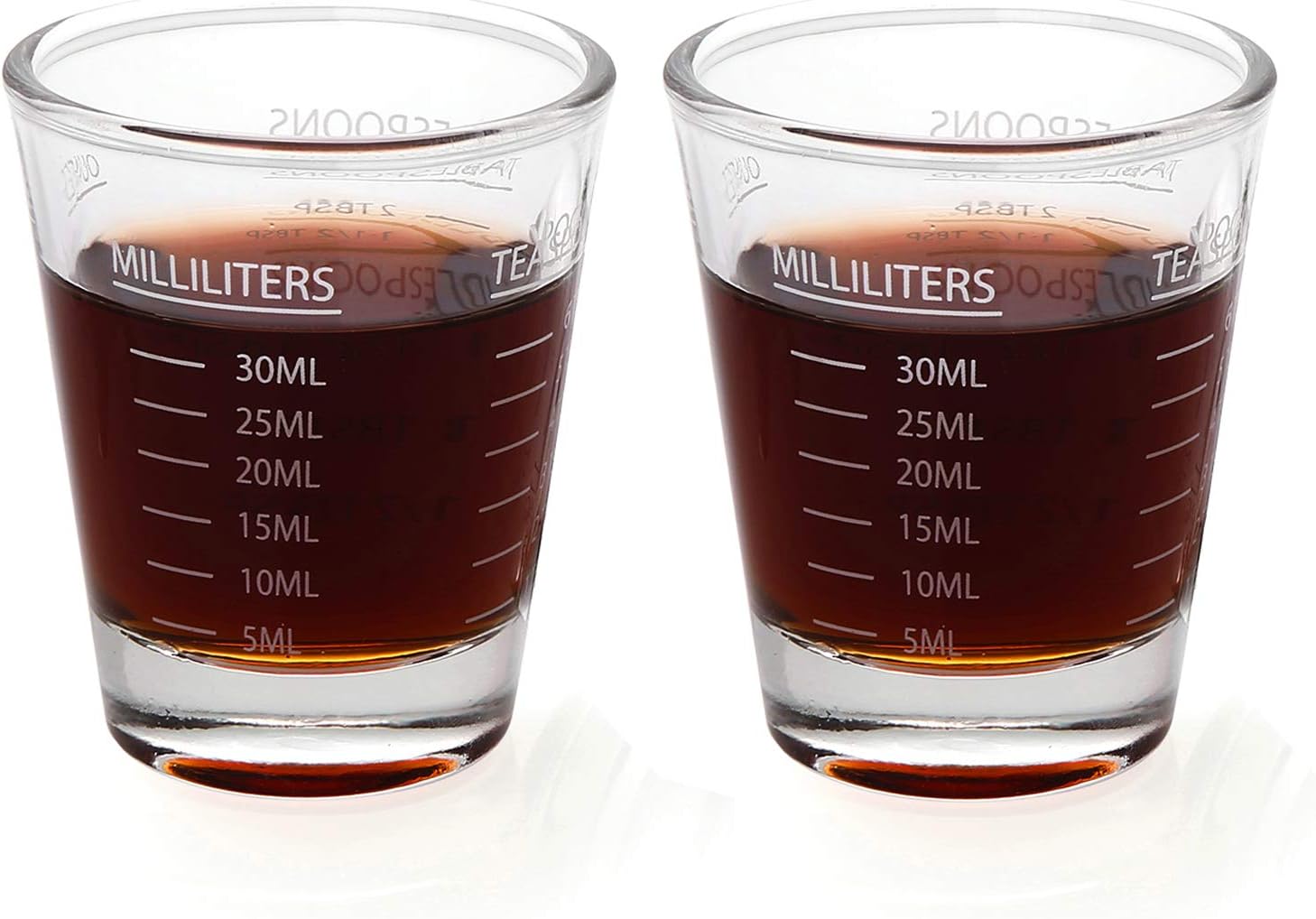 Shot Glasses Measuring cup Liquid Heavy Glass Wine Glass Espresso Shot Glass 26-Incremental Measurement 1 OZ 4 Features 45ML (2 pack-white 30ml)