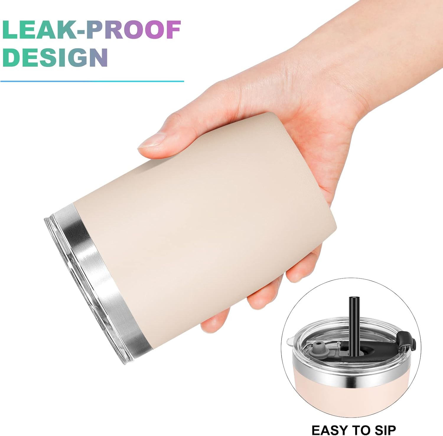 VEGOND Stainless Steel 12 oz Tumblers bulk Vacuum Insulated Double Wall Travel Tumbler with Lid and Straw Reusable Tumbler, Beige 6 pack