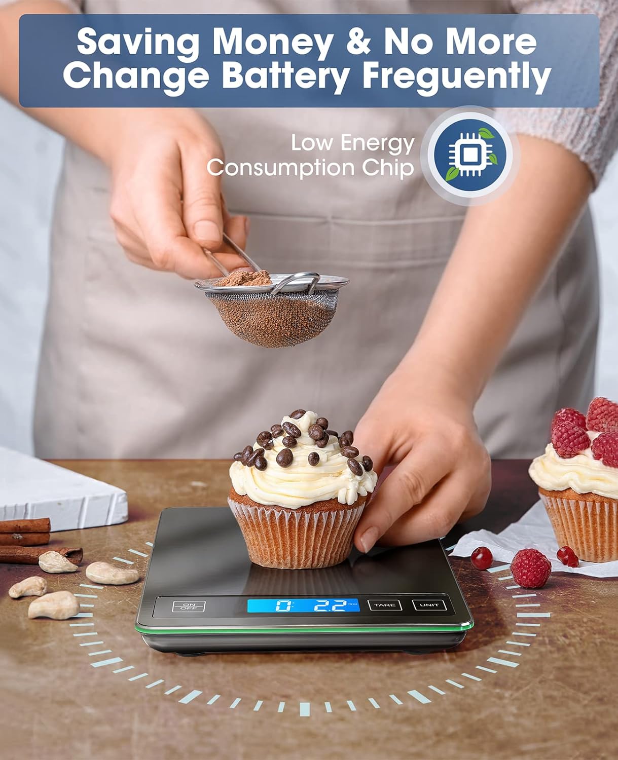 - HASSLE FREE SUPPORT:2 AAA batteries included. We are always stand behind our kitchen scales, please reach to us if you have any issues