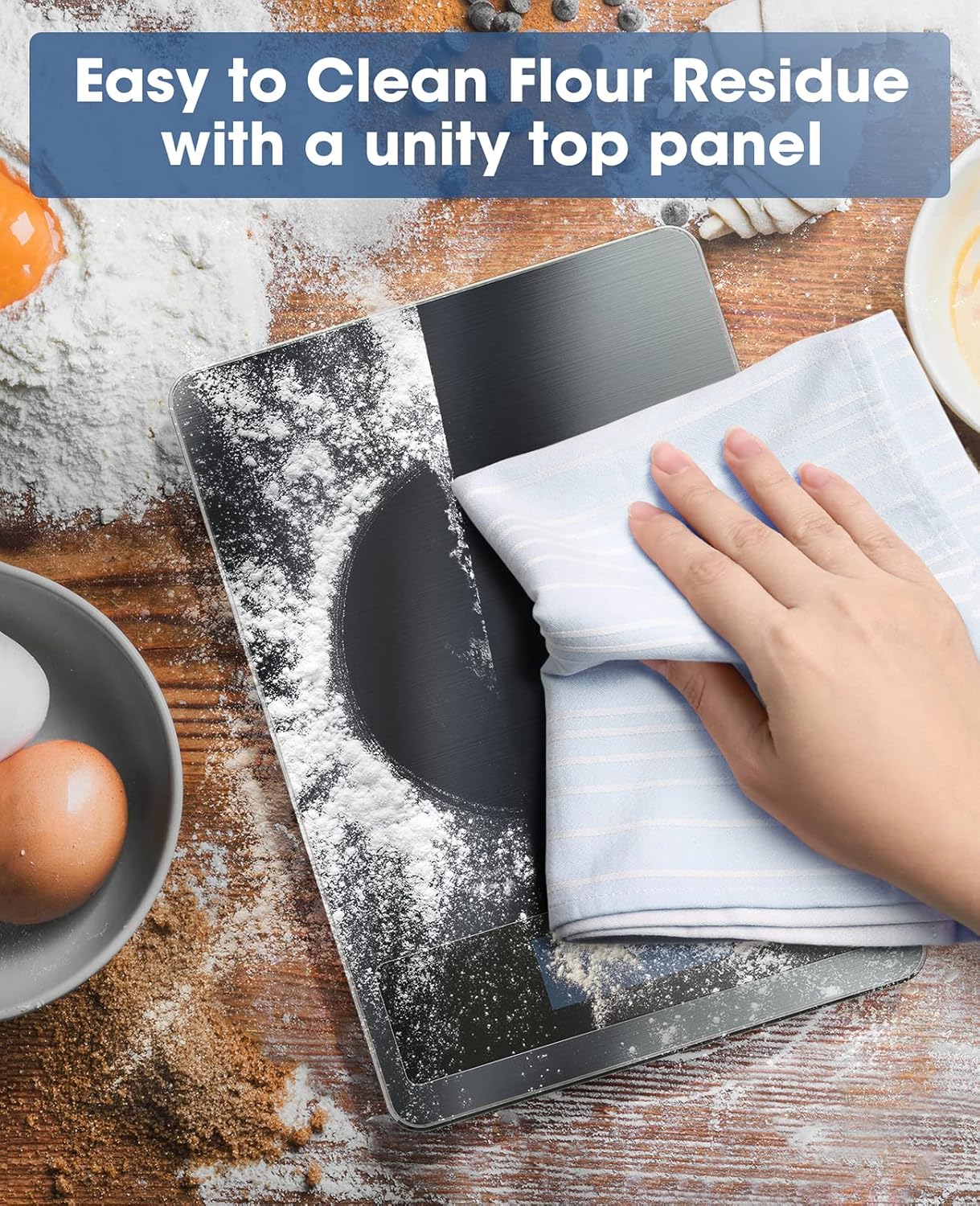 - PRACTICAL DESIGN: The food scale is designed with tempered glass for strong bearing, sleek stainless steel top surface for anti-fingerprint and easy clean, with a attached hook for convenient storage