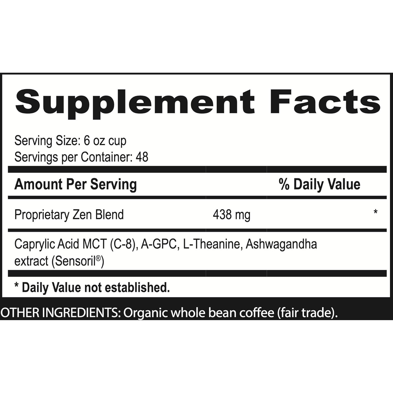 - Why Choose Zen Blend Coffee? In our organic coffee beans whole, the combination of scientifically backed nootropics like Alpha GPC and L-Theanine keeps your mind sharp and centered all day long. Sensoril Ashwagandha and C8 MCT oil work together to provide sustained energy, soothing stress while fueling your brain, without the rollercoaster highs and lows. Perfectly balanced to supercharge productivity while maintaining a calm, clear mental state.