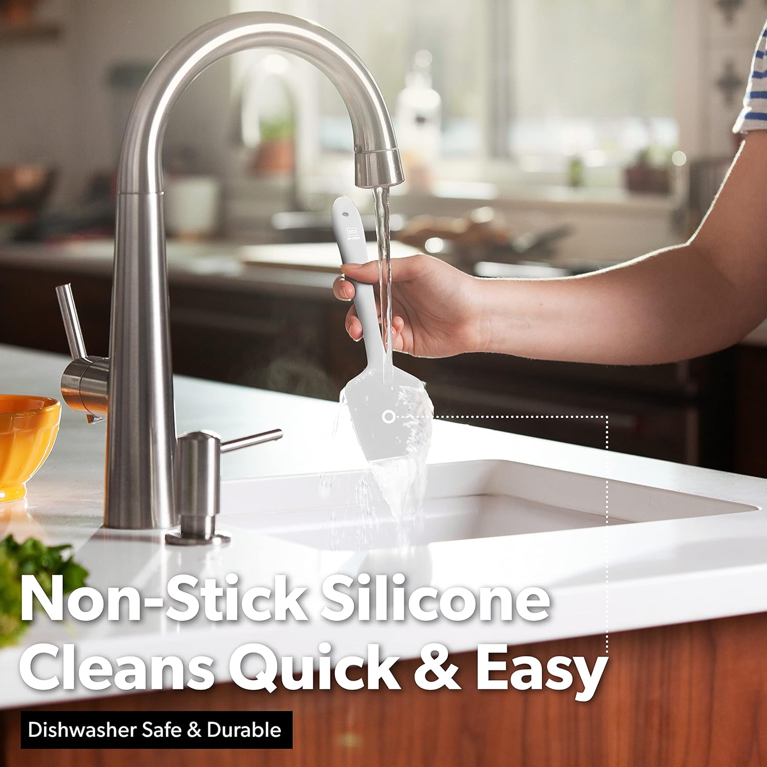 - HEAT-RESISTANT 600°F PRO-GRADE SILICONE - Our food grade, BPA free, and LFGB Certified silicone is safe for coated and non-stick cookware and perfect for use with hot foods and around the cook top and dishwasher safe.