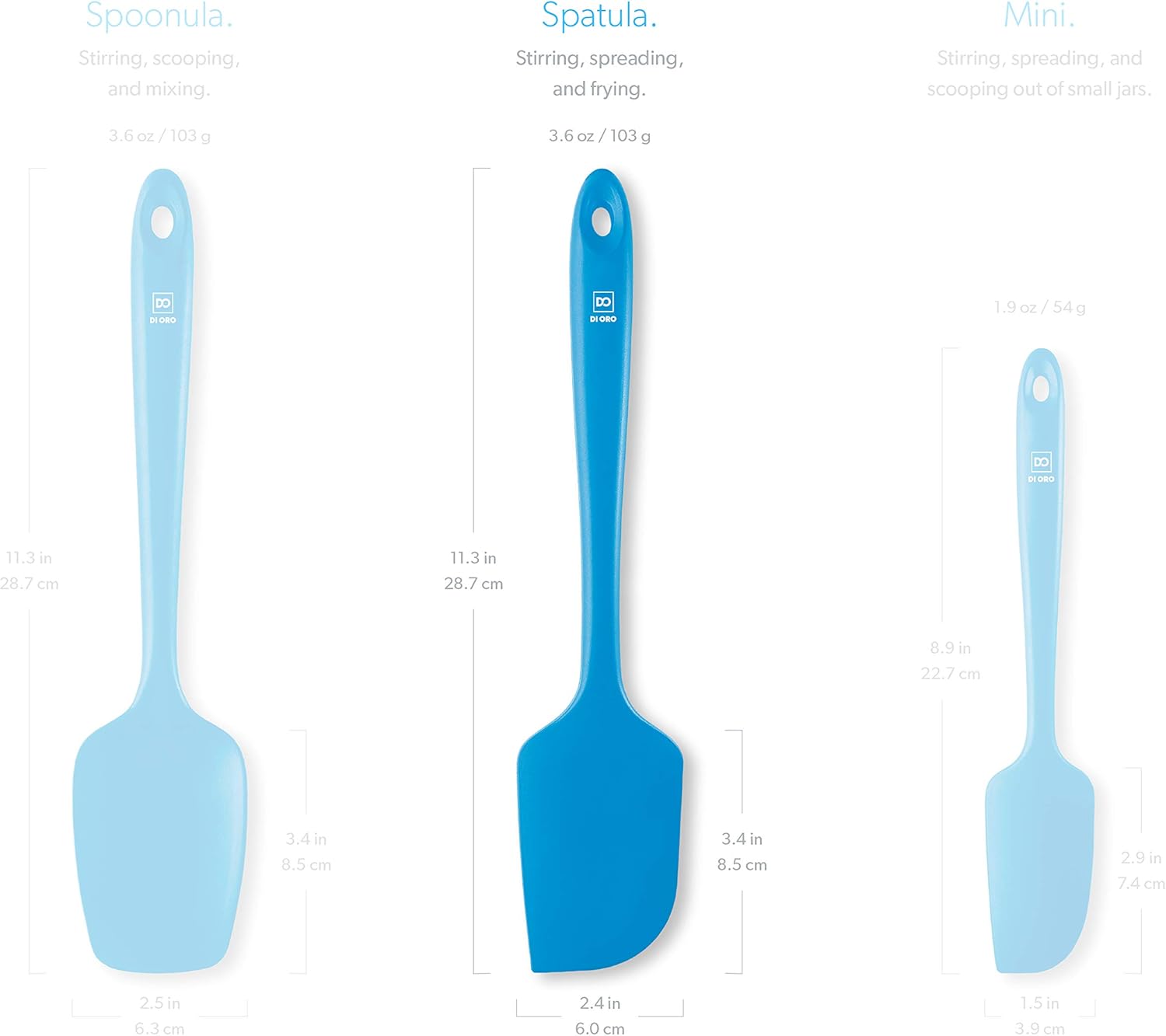 DI ORO Silicone Spatula - 600°F Heat-Resistant Rubber Kitchen Spatula for Baking, Scraping, & Mixing - BPA Free Nonstick Cookware Safe Flexible Utensil for Cooking - Seamless & Dishwasher Safe (Blue)