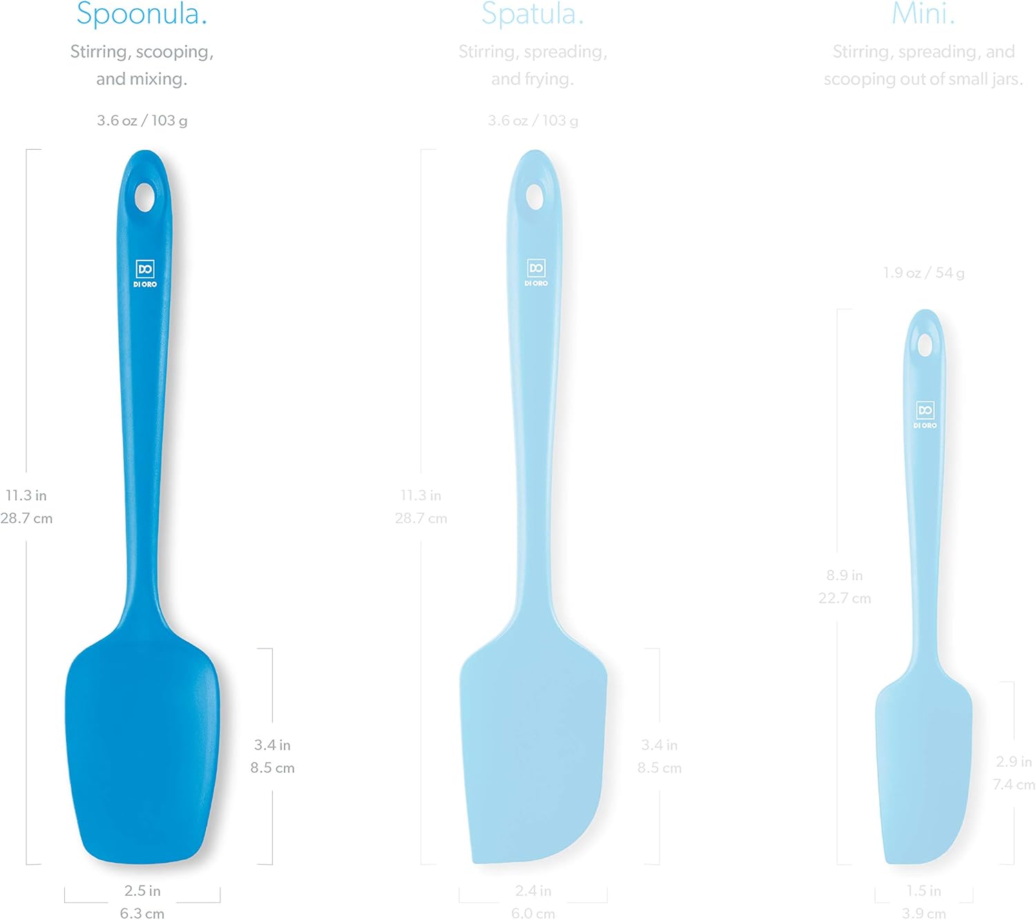 DI ORO Silicone Spoon Spatula - Forever Warranty - 600°F Heat-Resistant Large Silicone Spoonula Scraper - BPA Free Nonstick Cookware Safe Rubber Kitchen Utensil for Baking, Cooking, & Mixing (Blue)