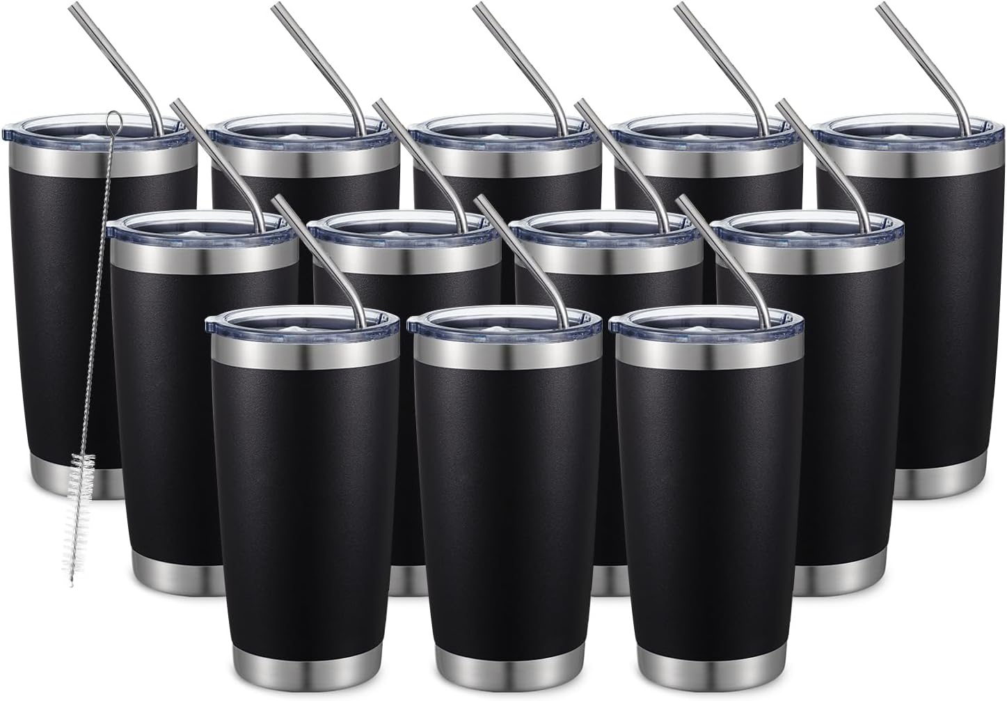 - [Exclusive Bonus Bundle]12*20 oz tumbler with splash-proof slide lid, 12*straw, 6*straw brush. The lid is splash-proof and perfect for office, school, trip and picnic. The great value tumbler suit will save your time and money