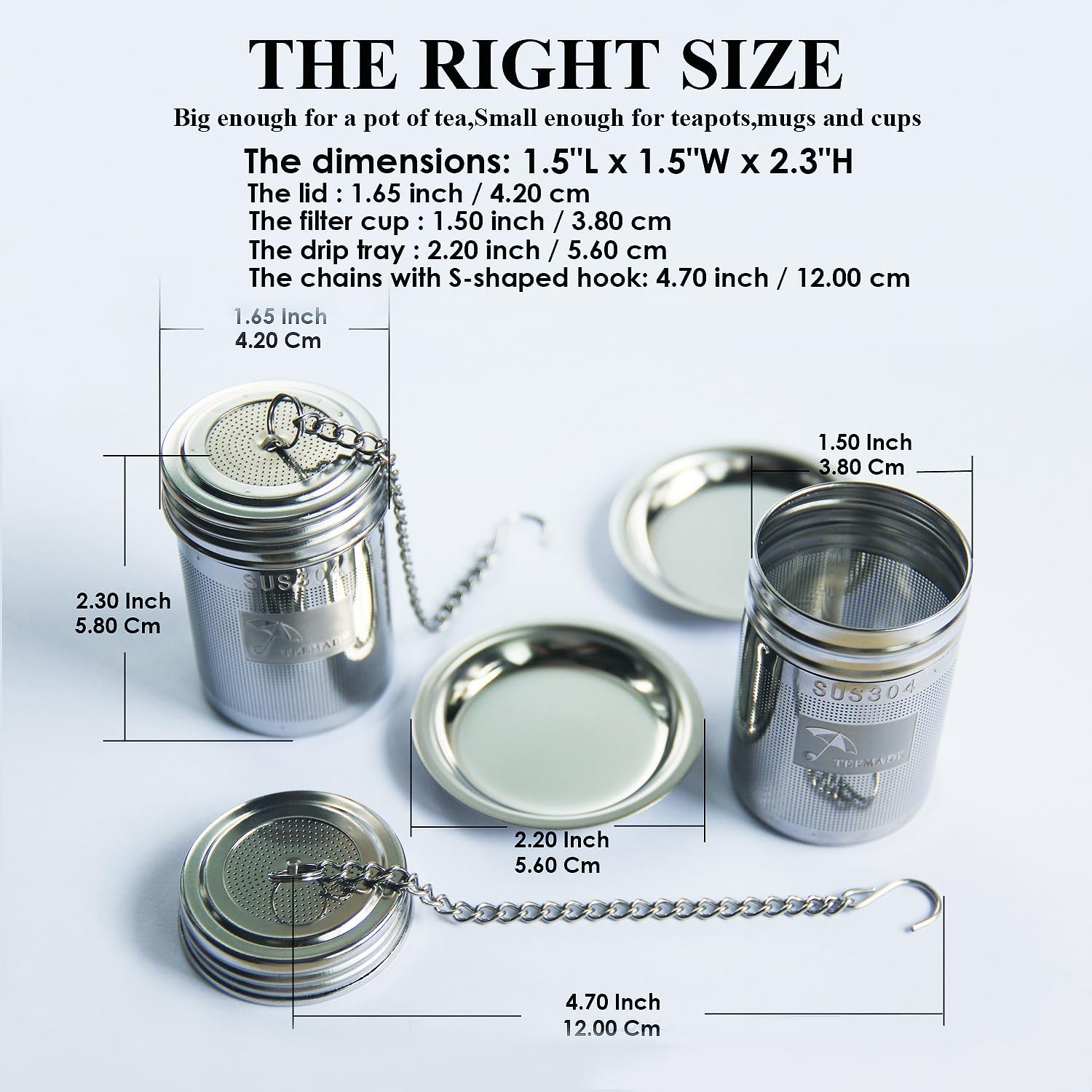 - ✅Better performance,Reasonable price! 2 Packs,Each pack includes 1 screw lid, 1 extra fine mesh cup, 1 saucer for avoiding making a mess when taking out. All the parts are made of 18/8 stainless steel. Odor & Chemical Free. Easy to clean and dishwasher safe.