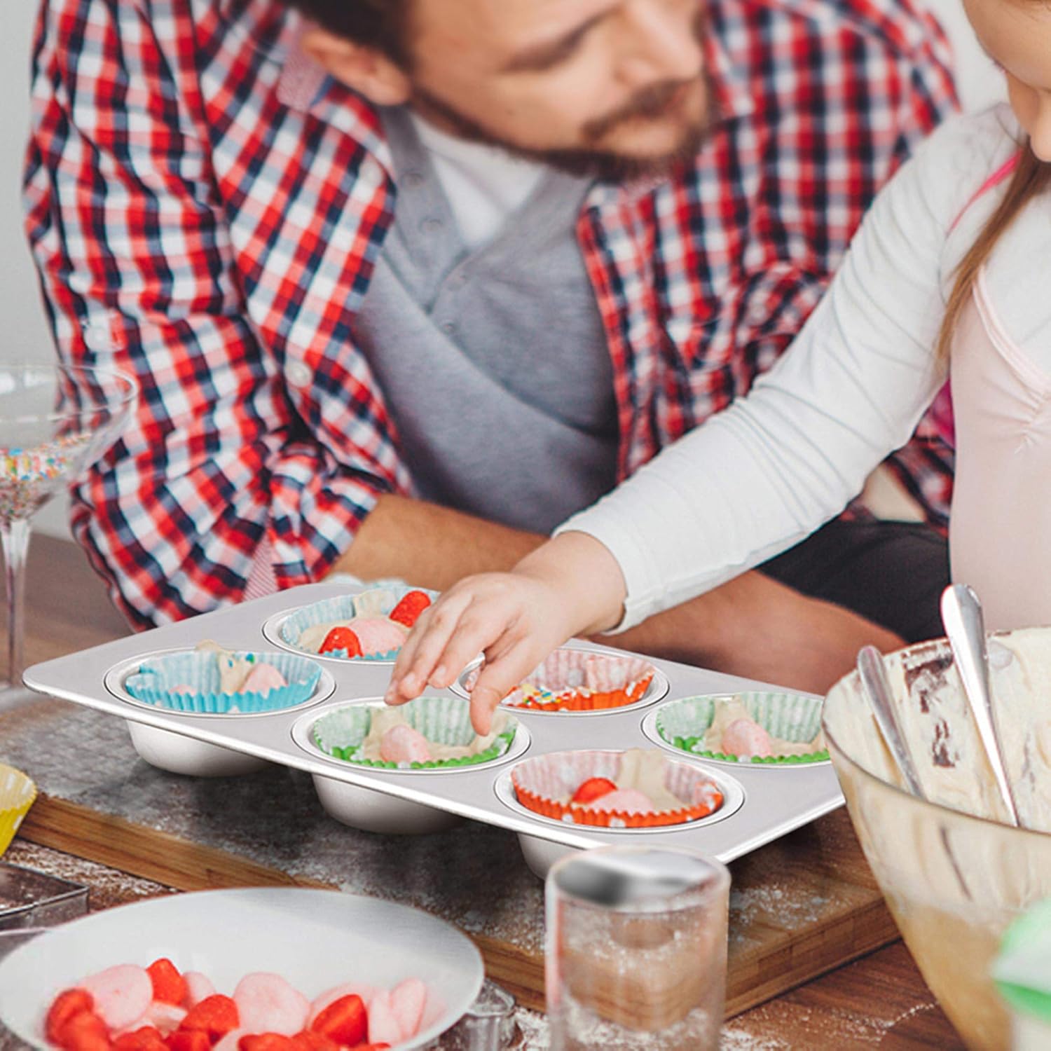 - BAKING EVENLY & DURABLE: Cupcake tin features solid construction and bright brush finish, Heats evenly for perfect baking results, Roll edge for comfortable handling in or out of the oven, Practicality and durability for long lasting use