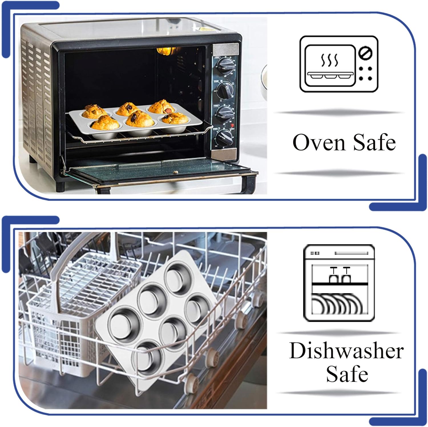 - OVEN & DISHWASHER SAFE: Muffin tray perfectly fits in the oven to bake stuff you want, Smooth surface keeps neat and good look, Conductive to release easily by hand-wash, Dishwasher safe to save time and hassle free