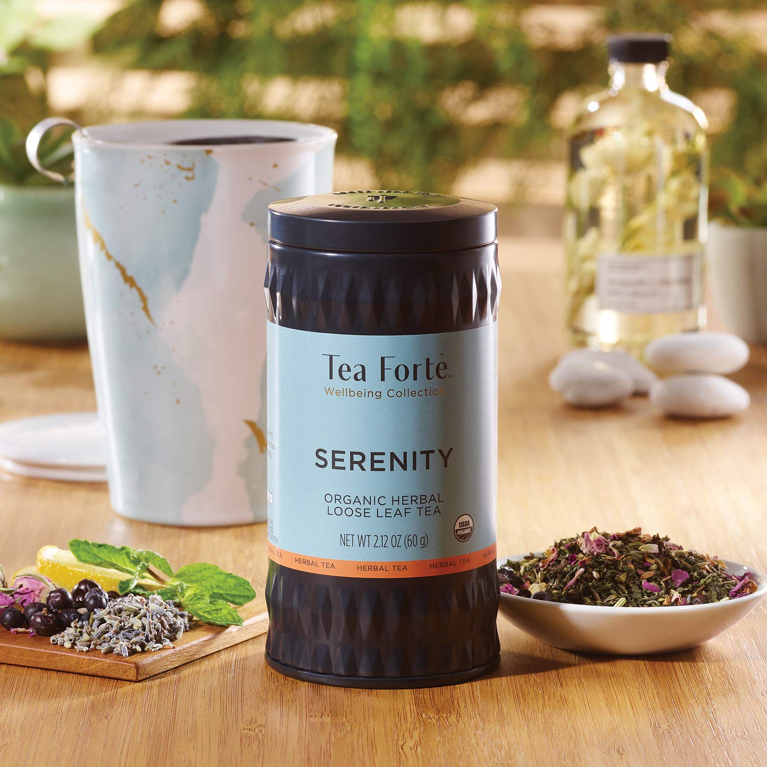 Tea Forte Serenity Premium Organic Loose Leaf Caffeine-Free Herbal Tea Blend Canister, Makes 35-50 Cups