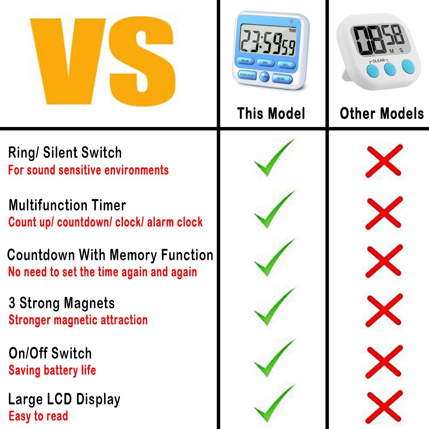 - Silent Mode & Ring Mode: Available for More Situations, We all dread the situation where our timer rings in the middle of a meeting, class or sound sensitive environments, mute & flash mode is the solution to that problem