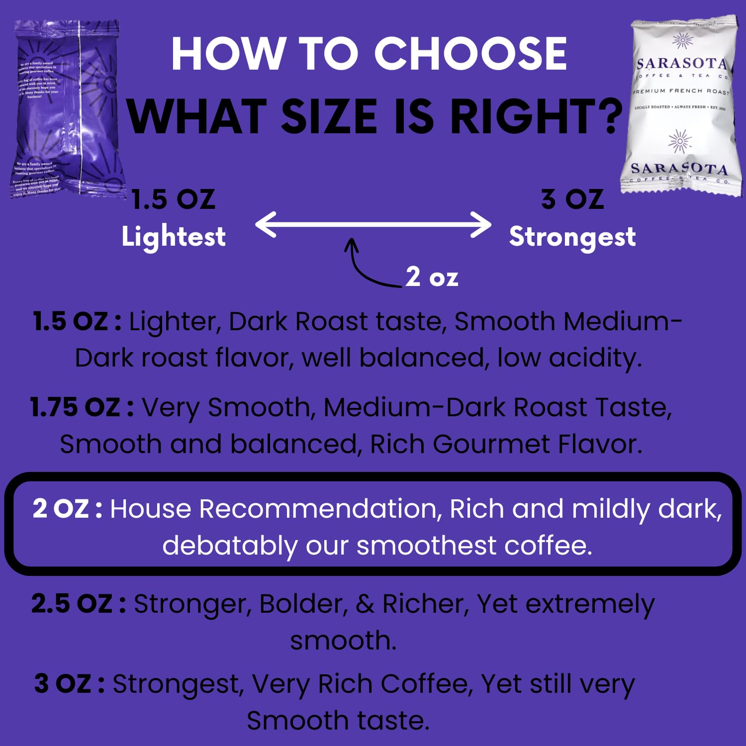 Sarasota Coffee Ground Packets | Low Acid Dark Roast Ground Coffee Packs | European French Roast | Mold Free Coffee Singles Packets | Ground Coffee Pouches | Individual Coffee Packets for 12 Cup Coffee Maker | 2 Ounce Bags, 36 Count