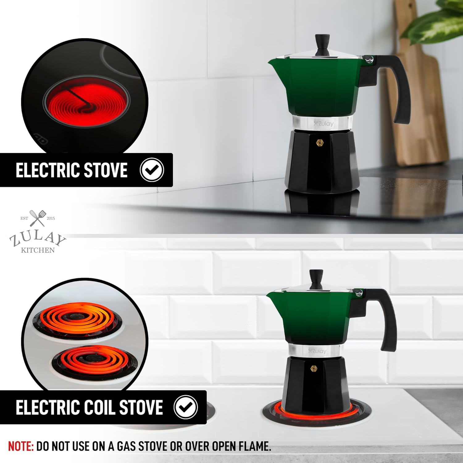 Zulay Kitchen Stovetop Espresso Maker - Moka Pot 6 Espresso Cups - Percolator Coffee Maker for Classic Cuban & Italian Style Espresso - Portable Coffee Maker for Camping & Travel - (Green/Black)
