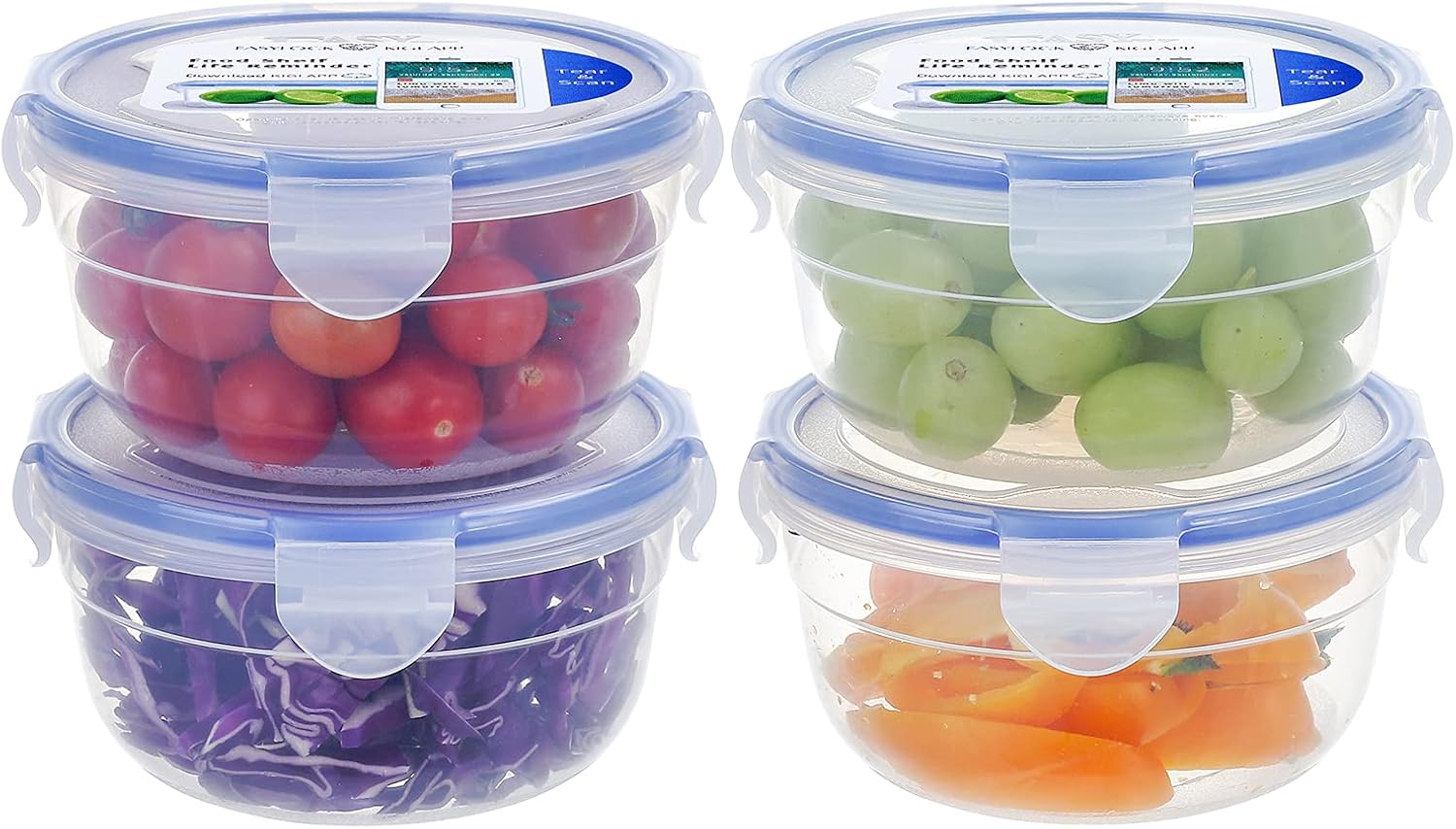 - 4 PACK PLASTIC FOOD CONTAINERS:20OZ plastic round food storage bowls can storage food effectively and tidy up the kitchen space.They could hold cereal, soup, pasta, ramen,fruit, ice cream and more, also great to used as meal preps and leftovers