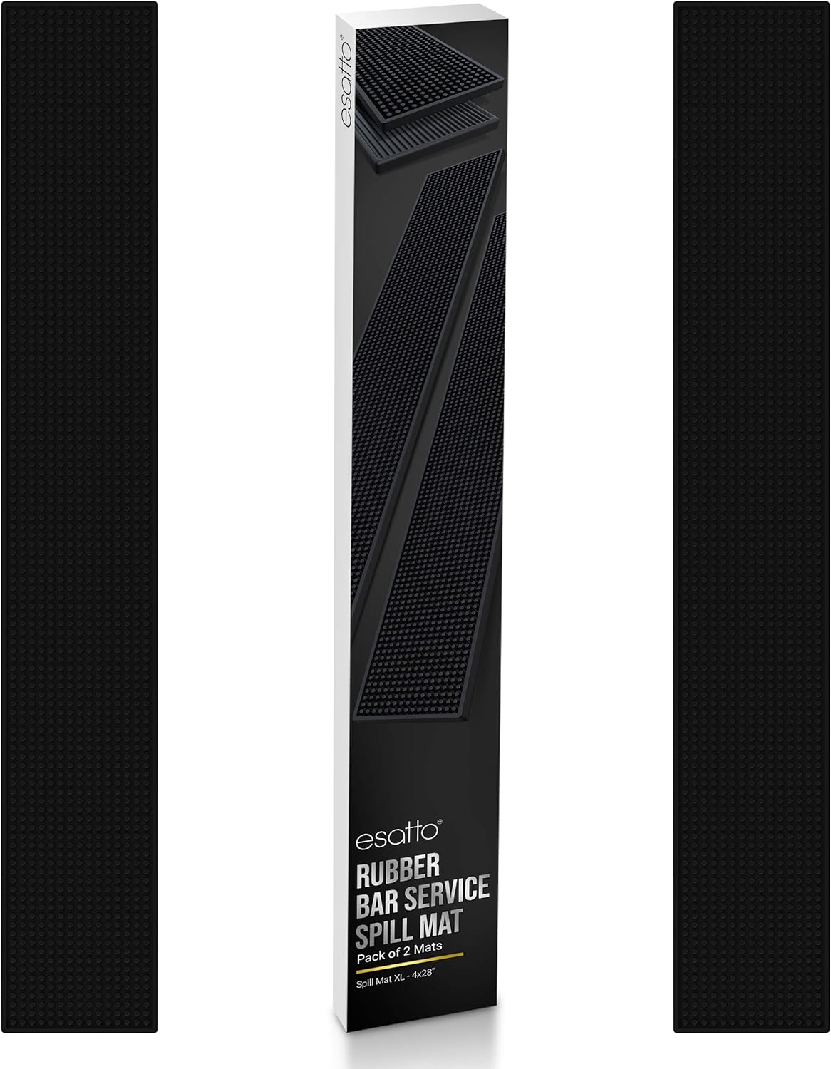 - BAR MATS FOR BARTENDING: This set comes with 2 Black Bar Mats for Countertop. Made from durable materials, these mats are essential bar accessories that can be easily cleaned with warm water and will retain their shape for years of use. While they are versatile enough to fit most bar setups, they are particularly suited for use with the Esatto 28” x 4” XL Professional Service Spill Bar Supply Mat. Every drop is an opportunity to earn, and these bar mats for bartending ensure that this opportunity turns a profit.
