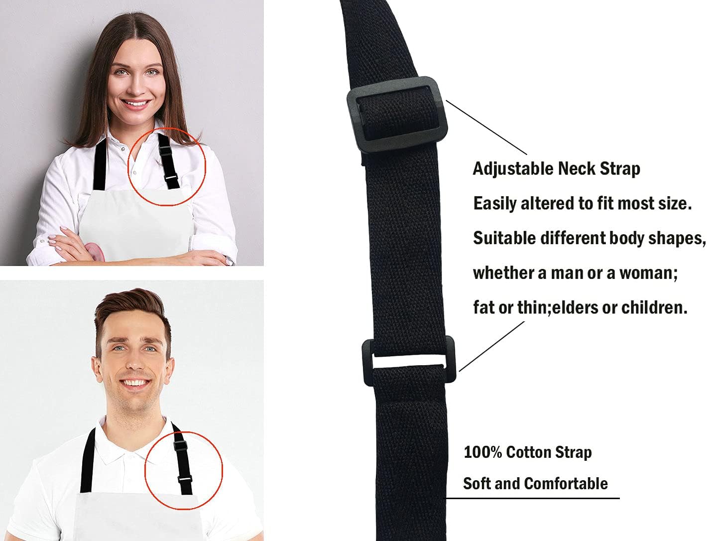 - Adjustable neck strap with black ties,The adjustable Neck strap design, It can be adjusted quickly for people of different heights, making it easier to wear.