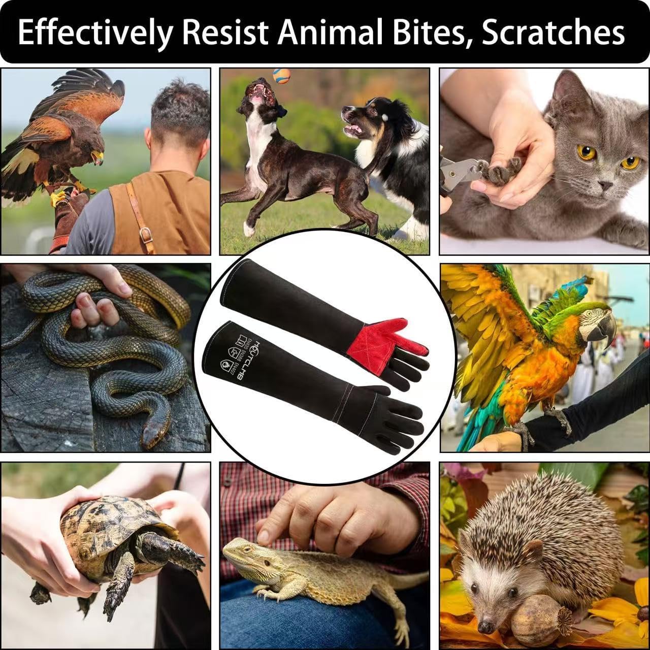- ★MULTIFUNCTION--The gloves are not only for welding but also useful for many other work and home tasks.but also for handling feral cat,training dogs, cats, snakes, parrots, lizards and other pets.Forge,Grill,Barbecue,Stove,Oven,Fireplace,Cooking, Baking,Pruning flowers,Gardening,Camping,Campfire,Furnace,Animal handling,Whitewash. Whether men or women use it,it's friendly for people and our environment.