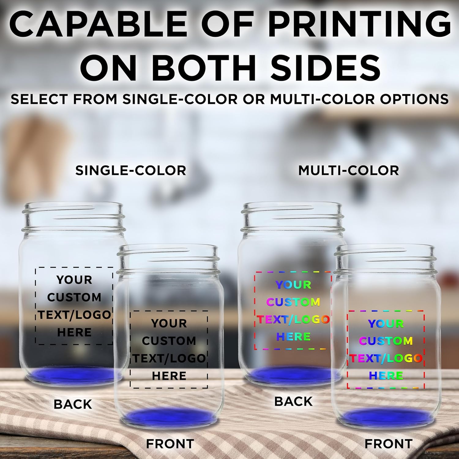 DISCOUNT PROMOS Custom Decorating Mason Jars 12 oz. Set of 10, Personalized Bulk Pack - Glass Jars for Overnight Oats, Candies, Fruits, Pickles, Spices, Beverages - Blue