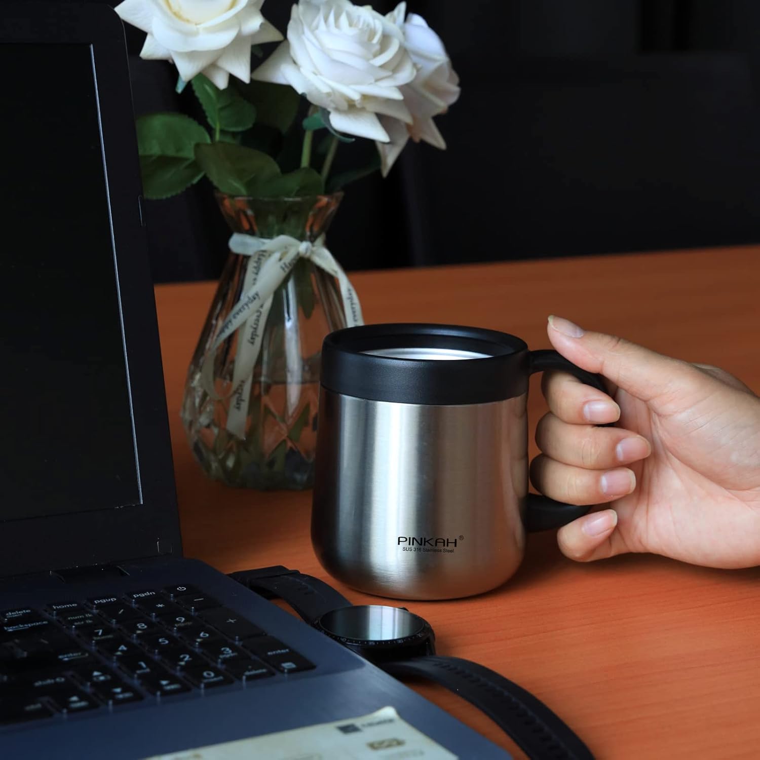 - VACUUM INSULATION COFFEE MUG: The coffee mug is vacuum double insulated. The double-walled insulation design ensures beverage can stay either hot or cold over time. Let you enjoy hot or cold drinks, and protect your hands.