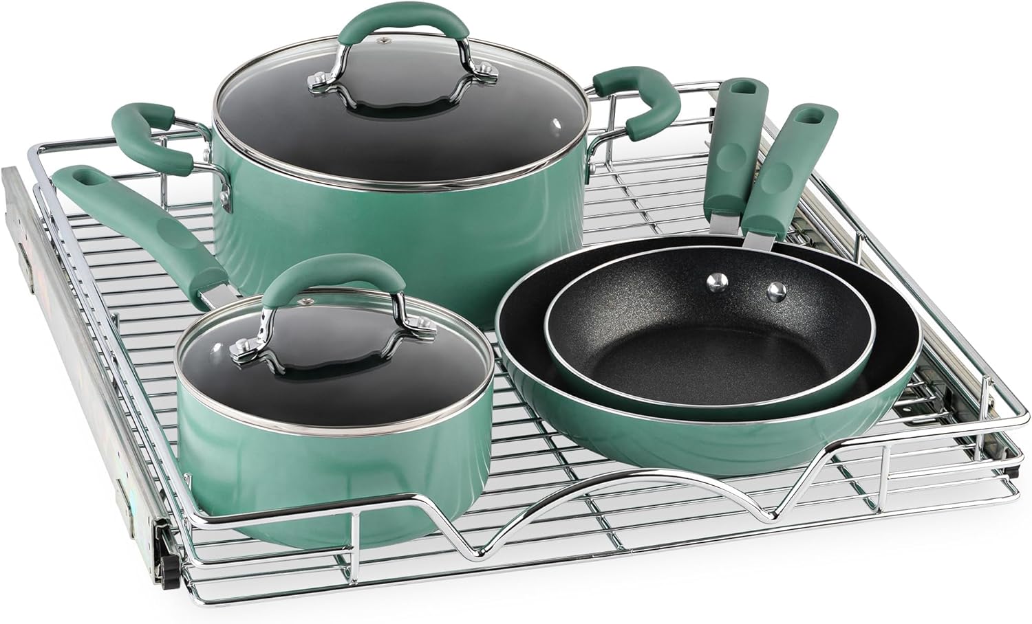 - LARGE CAPACITY CABINET DRAWERS SLIDE OUT: Sliding cabinet shelf dimensions are 17”W x 17”D x 3.25” and includes step by step instructions with all necessary hardware.