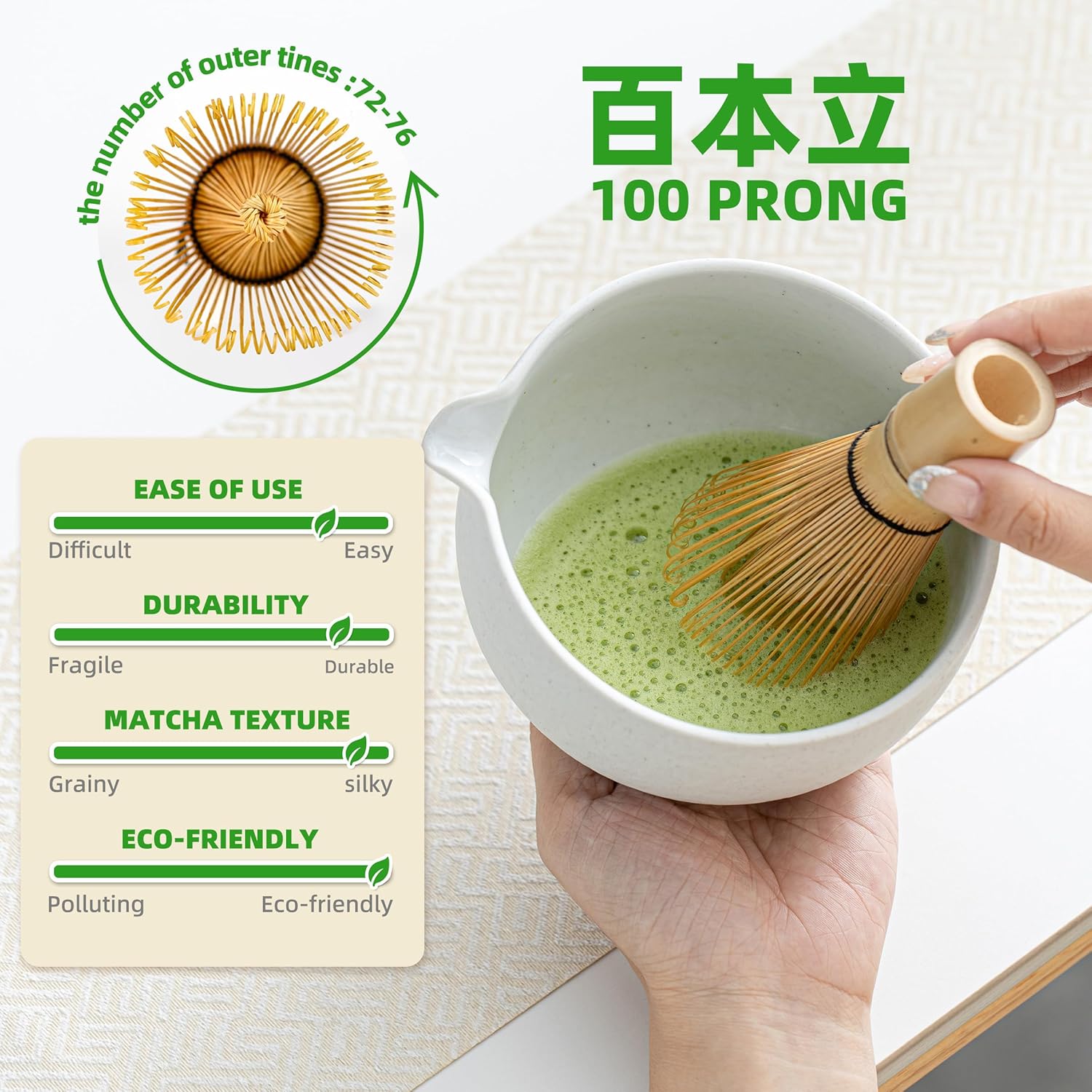 - HIGH SAFETY & QUALITY: Our Handcraft Matcha Whisk, About 100 Fine Tines(百本立),100% Crafted From High Quality Bamboo With A Vegetable Oil Finish To Enhance Its Durability. Additionally, Our Ceramic Bowl Has Lead-free And Mercury-free Test Reports.food-grade And Eco-friendly