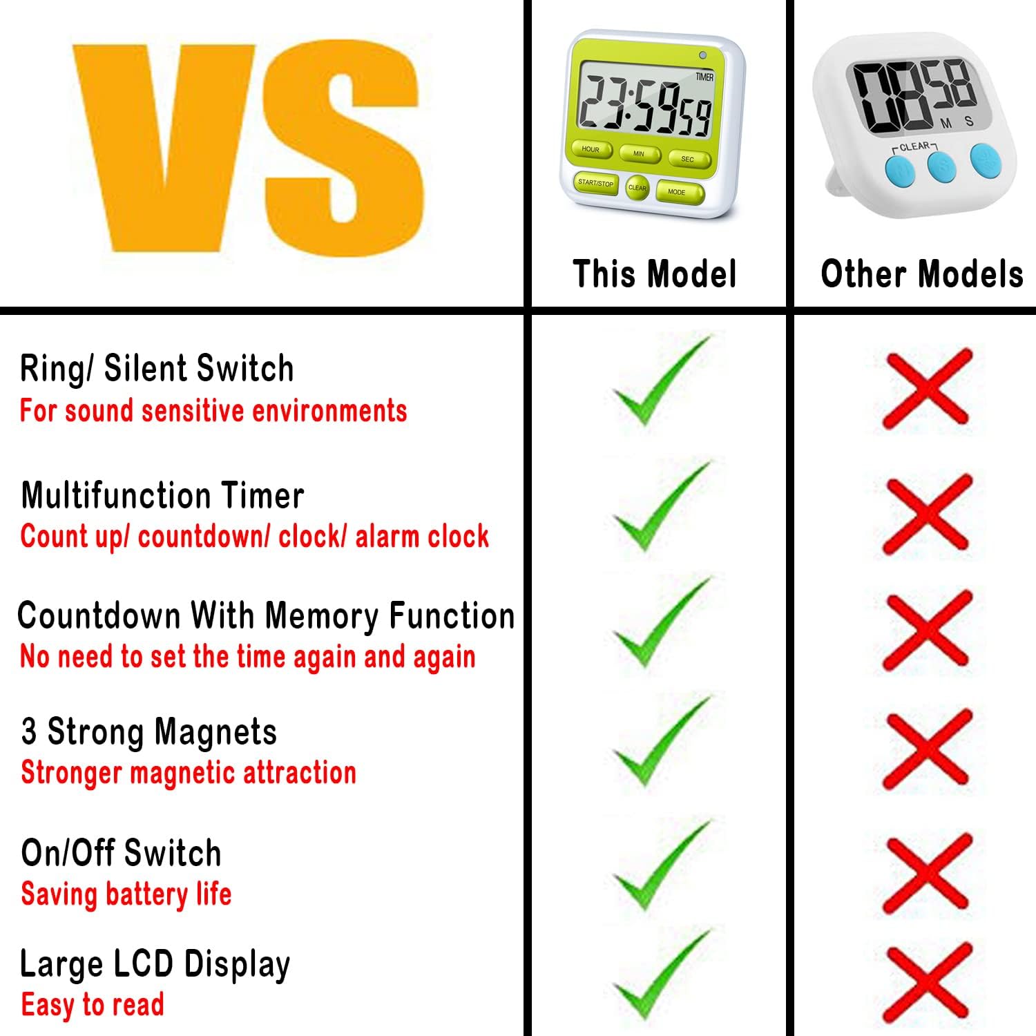 - Silent Mode & Ring Mode: Available for More Situations, We all dread the situation where our timer rings in the middle of a meeting, class or sound sensitive environments, mute & flash mode is the solution to that problem