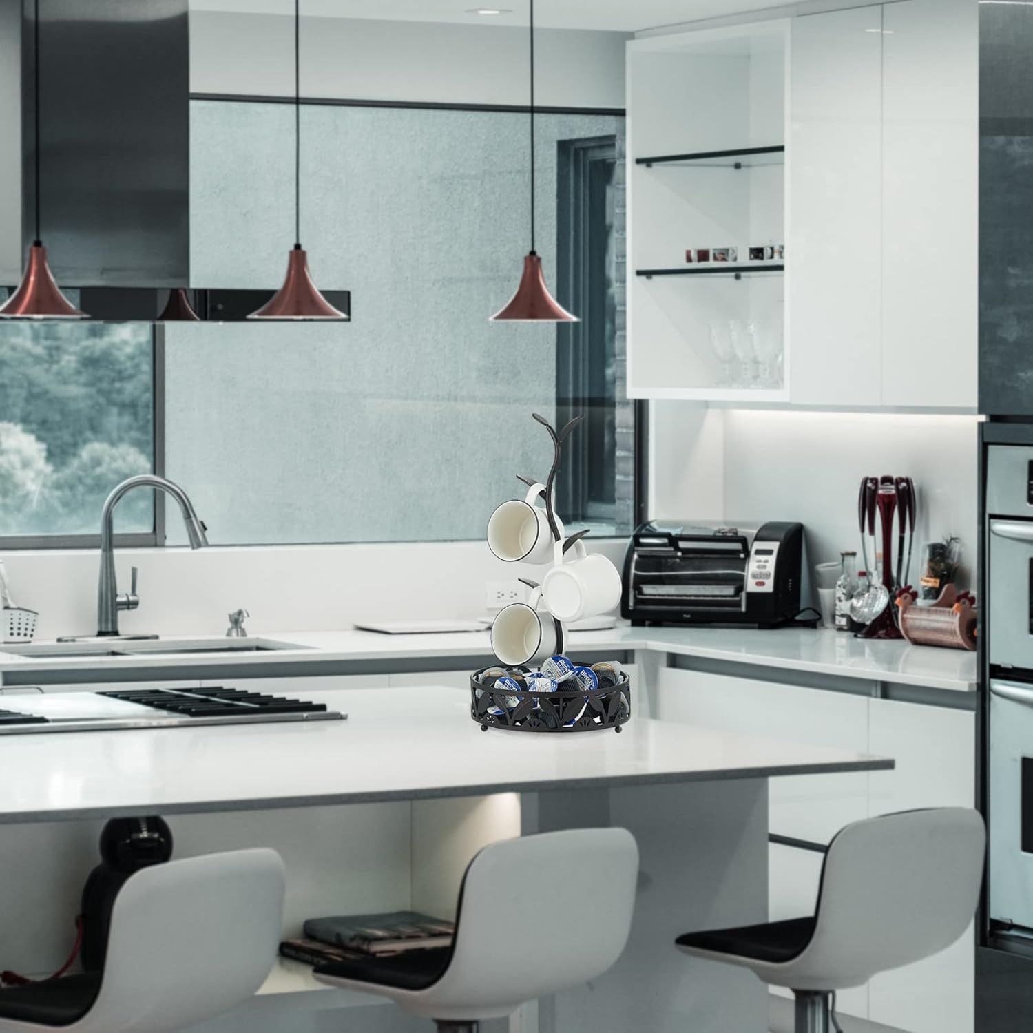 - Introduce Modern Style: With clean, smooth lines, this coffee mug holder inspires an up-to-date look that is fresh and contemporary. The modern finishes complement a variety of kitchen styles and color schemes, showing off your style in the best light. Coffee mug rack open design adds a touch of nature to your kitchen’s decor.